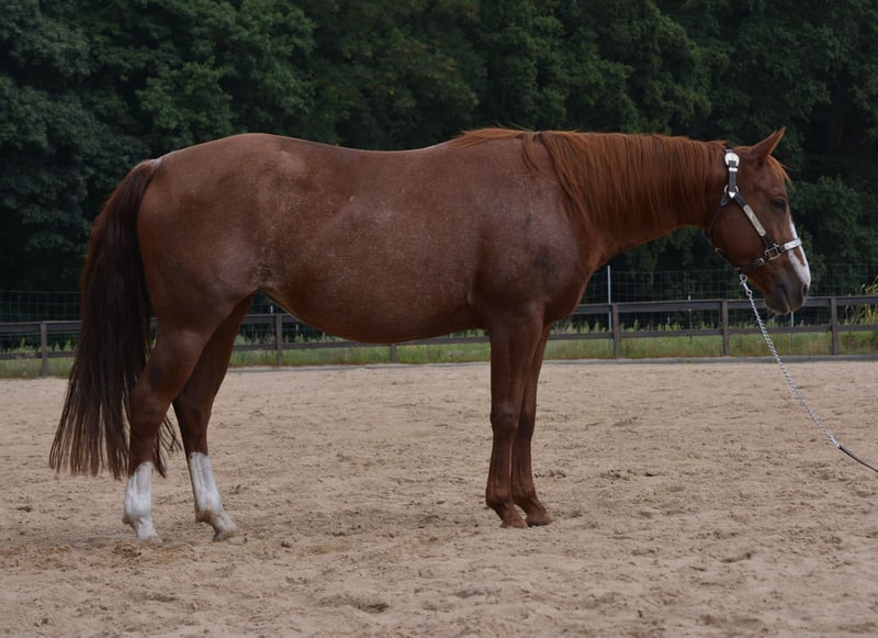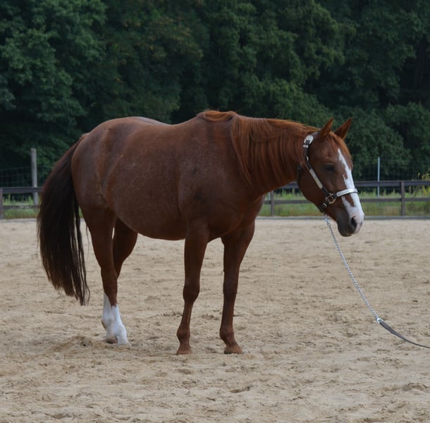 "Gini" ist eine Traumstute. Wunderschön und talentiert ohne Ende. Eigentlich sollte sie hier Turnierpferd werden, aber aus Zeitgründen ist das nichts geworden. Sie läuft brav Schritt, Trab, Galopp. Auf Grund ihrer Sensibilität und Schlauheit ist sie nichts für Anfänger. Mit dem richtigen Menschen wird sie aber ein MEGA Pferd für Rinder, Ranchriding, Reining oder Freizeit. Ihr Papier ist voller Größen in Reining und Cowhorse und sie würde sicher auch eine tolle Zuchtstute werden.