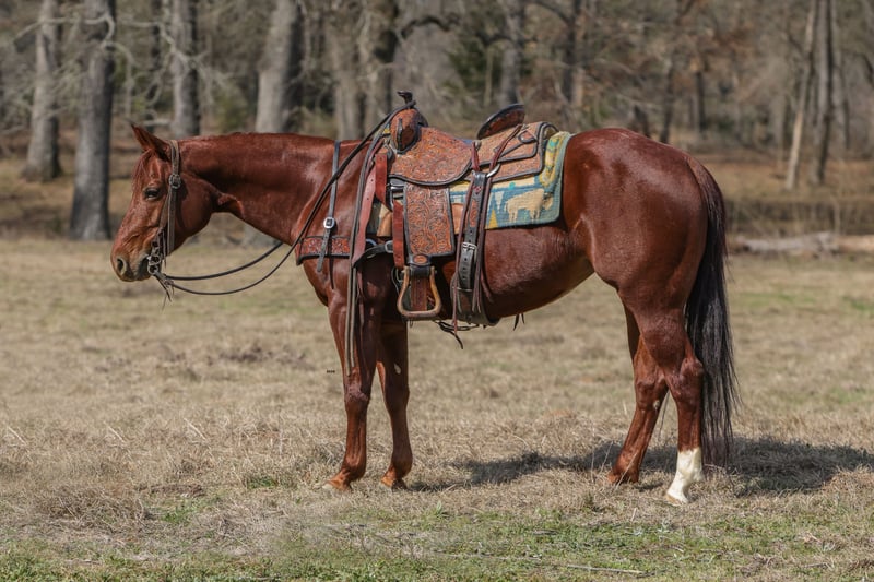 ❤️🔥𝑩𝒆 𝑴𝒊𝒏𝒆 𝐒𝐄𝐋𝐄𝐂𝐓❤️🔥 Happening now thru MONDAY | FEBRUARY 9th - Available EXCLUSIVELY on HorseBid's website! For more details and to register visit: www.Horsebid.com CONSIGNOR CONTACT: TR Livestock company 605-370-4644 LOCATION: Rusk, TX BREED: AQHA REGISTERED: Yes REGISTERED NAME: Meradas lunareclipse COLOR: Sorrel HEIGHT: 14.2 AGE: 8 GENDER: Mare MERADAS LUNARECLIPSE AKA Luna is a 8 year old sorrel mare, standing 14.2 hands tall. Luna is a finished cutter and has a lot of cow sense and will really watch a cow! She’s an all-around, dependable mare that has seen just about everything you can throw at a horse. She’s sired by Thomas E Hughes (NCHA earner of $393,044.80) She is out of Meradas kitten (NCHA earner of $73,036.07) Luna has extensive training in and out of the arena, She lopes nice circles, knows her leads, has a big stop, nice turnarounds, and a nice, soft feel in the bridle. She has tracked the hot heels on the heel side and has the mind and ability to make a very competitive sorting or penning horse. She has a natural cow sense, reads cattle well, and stays with them without getting hot or pushy. Outside on the ranch, she’s been a true working horse, gathering cattle, and branding calves. She crosses water without hesitation, steps confidently over bridges, ditches, logs, and rough ground, and goes wherever you point her. She’s gentle enough for the family, friendly, and easy to be around. She is great to haul, load, bathe, and stands tied all day without fuss.Luna is an excellent mare with the mind, ability and pedigree to do anything! Luna is located in Rusk Texas, nationwide shipping is available! Call or text Rachel 605-370-4644 for more info!