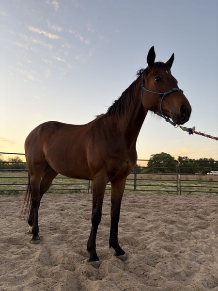 Located in Sutherland Springs, TX, within an hour of San Antonio, TX. Pam is estimated to be a 8 year old quarter horse. 15.1 hands. This is a darling horse who is perfect for an experienced and confident rider to finish out. She is currently green broke. Vaccinations and Coggins up to date. Pros: - Good ground work base. She can lunge, round pen, perform forehand/haunch turns, and back up. - Responds well to desensitization. - Easy to blanket. - Cons: - Mildly cinchy. She will turn her head to look at you while cinching. Other than that, she does tack up well. - Lacks confidence under saddle. For example, you need to be gentle when asking to back under saddle. Previously, she had bad teeth which resulted in pain. Ultimately, this has made her currently apprehensive for backing under saddle. - Does better loose tied. Has a tendency to pull and spook when hard tied. I am posting her for friends! To contact owners for more information reach out to Sonja Wagoner Miles Before Smiles horse training and lessons