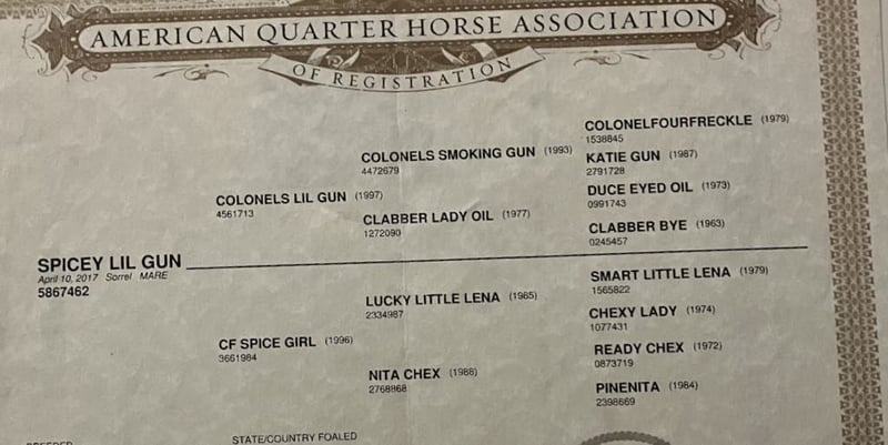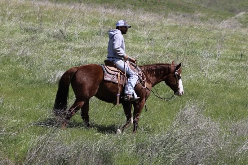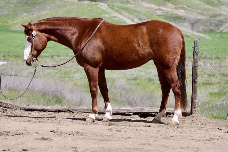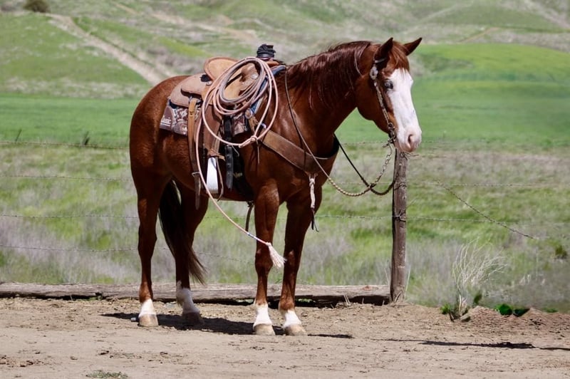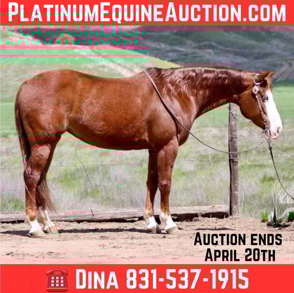 ONLINE AUCTION Place your bids at www.PlatinumEquineAuction.com Starting Bid $3500 Auction ends April 20th, 2025 Need a new saddle? Check out White Rock Saddles on our website or Facebook! A Spicey Lil Gun: The Rare Find Everyone is Looking For. When it comes to finding the perfect horse, there are a few characteristics that every rider looks for. A calm demeanor, natural ability, and a willingness to take on any challenge are just a few of the qualities that make up an ideal equine partner. And with this AQHA 2017 sorrel mare, standing at 14.3 you can rest assured that you have found all of these traits in one beautiful package.Lilly’s lineage alone is enough to make any horse enthusiast swoon. With the highly sought after bloodlines of Colonel Smoking Gun and Smart Little Lena running through her veins, she truly is a gem among horses. But what sets her apart even more is her stunning bald face, four whits sock and piercing blue eye – making her a show stopper wherever she goes.But don’t let her striking appearance fool you – Lilly’s true beauty lies within her sweet and kind nature. She naturally rides low headed and collected, effortlessly picking up leads and navigating precise circles in the arena. Her calm demeanor makes her a pleasure to be around both on the ground and under saddle.And when it comes to her training, Lilly has all the “cool buttons” any rider could ask for. Soft supple movements come naturally to her as she performs flawless turnarounds and stops. She has been extensively used on ranches where she has proven herself as a reliable partner to gather in rough terrain while remaining sure-footed at all times. She has branded and sorted cattle and has been started on the sled steer she would make a fantastic heel horse. But Lilly isn’t just limited to ranch work – she excels in other disciplines as well. From trail obstacle courses to parading around town , this mare takes everything in stride with her willing attitude. Whether it’s crossing bridges or navigating narrow trails ,walking through water or wildlife, nothing fazes this girl. In addition to being versatile under saddle, Lilly also possesses impeccable manners on the ground. She stands patiently for grooming sessions and tacking up, clips without issue, and is good for the farrier. She has also been exposed to various environments and situations, making her comfortable in both stall and pasture settings. And for those looking for a horse to accompany them on overnight camping trips or scenic trail rides, Lilly is the perfect companion. She has been high-tied without any issues and is not bothered by new surroundings. Her calm demeanor makes her an ideal choice for any rider – whether you’re a beginner or experienced equestrian. If you’ve been searching for that all around horse who truly has it all, look no further than Lilly. With her stunning looks, impeccable training, and sweet personality, she truly is a dream come true. So why wait? Contact Longhorn Ranch Dina at 831-537-1915 today and come meet your dream girl in Paicines, California. Trust us – you won’t be disappointed! ONLINE AUCTION Place your bids at www.PlatinumEquineAuction.com Starting Bid $3500 Auction ends April 20th, 2025 Need a new saddle? Check out White Rock Saddles on our website or Facebook!