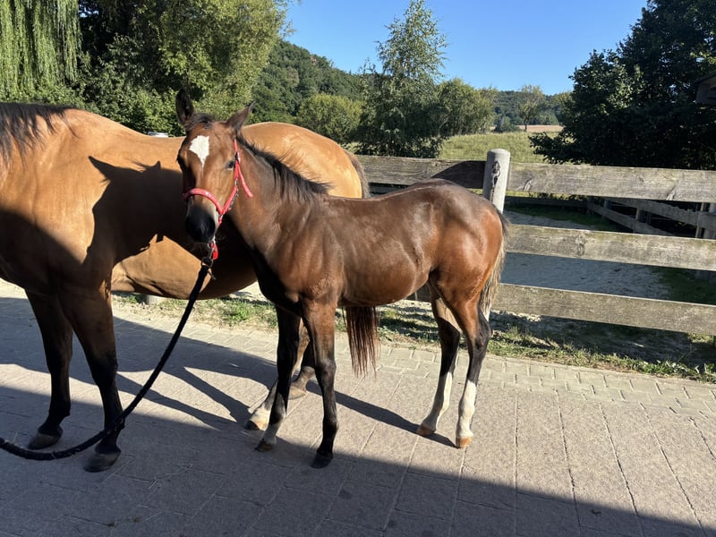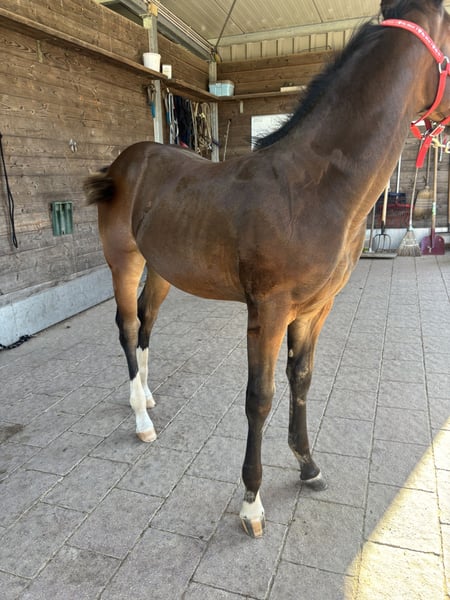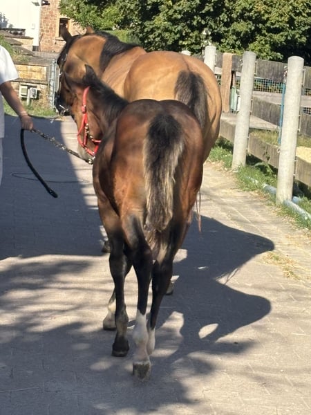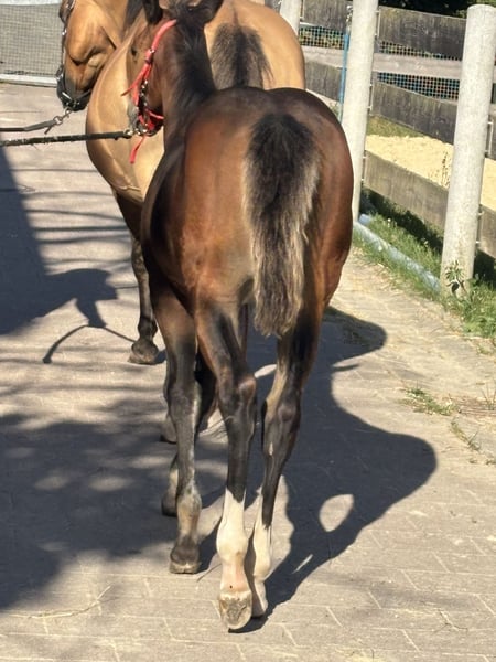 Wunderschöne Stute, 6 Panel n/n **Merkmale:** - **Rasse:** American Quarter Horse - **Geschlecht:** Stute - **Geburtsjahr:** 2025 - **Farbe:** Buckskin (Creme Gen) - **Stockmaß:** 150 cm - **Eignung:** Cowhorse Diese wunderschöne muskulöse Stute vereint die typischen Eigenschaften der Quarter Horses: Sie ist intelligent, lernwillig und hat einen ausgeglichenen Charakter. Mit ihrer tollen Buckskin-Färbung zieht sie alle Blicke auf sich. Ideal für Cowhorse-Disziplinen, zeigt sie bereits vielversprechende Ansätze in der Arbeit mit Rindern. Holly kennt das Fohlen ABC, wurde regelmäßig entwurmt und gibt Hufe. Bei Interesse oder Fragen stehen wir Ihnen gerne zur Verfügung. Besuchen Sie uns, um diese außergewöhnliche Stute kennenzulernen!