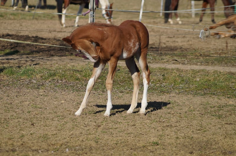 AM Timeless - ein außergewöhnlich typvoller Quarter Horse / Paint Horse Hengst, geboren am 28. Januar 2025. Mit seiner wunderschönen sorrel/sorrel overo Farbe und seinem harmonischen, korrekt gebauten Körper ist er ein echter Eyecatcher. Braxton wird voraussichtlich ein Endmaß von etwa 157-160 cm erreichen und bringt eine hervorragende Bemuskelung mit, sodass er später auch größere Reiter gut abdecken wird. Der junge Hengst ist doppelt registriert, sowohl bei der AQHA als auch bei der APHA, und die Papiere liegen bereits vor. Er ist 5-Panel n/n getestet, selbstverständlich gesund, regelmäßig entwurmt, altersgerecht geimpft und kennt den Tierarzt sowie den Hufschmied. AM Timeless wächst artgerecht im Herdenverband auf und zeigt sich dabei sehr sozial und ausgeglichen. Charakterlich ist er ein echtes Goldstück - menschenbezogen, verschmust und cool im Umgang. Er kennt das Fohlen-ABC, ist halfterführig, gibt brav die Hufe und lässt sich problemlos putzen. Mit seinem angenehmen Temperament, seiner schnellen Auffassungsgabe und seiner Lernfreude bringt er die besten Voraussetzungen für eine erfolgreiche Ausbildung mit. Auch unter sportlichen Gesichtspunkten lässt AM Timeless keine Wünsche offen. Seine überragenden Grundgangarten und seine geniale Pleasure-/Allround-Abstammung machen ihn zu einem vielversprechenden Nachwuchspferd für den Sport- und Turnierbereich, ebenso wie zu einem idealen Partner für den ambitionierten Freizeitreiter. Braxton ist ein Enkel von Only Krymsun und Diesel Only. Der Hengst ist zudem DQHA- und PHCG-Futurity startberechtigt. Ob als zukünftiges Showpferd oder zuverlässiger Freizeitpartner - AM Timeless vereint Qualität, Ausstrahlung und Charakter in einem beeindruckenden Gesamtpaket und ist damit ein echtes Versprechen für die Zukunft.