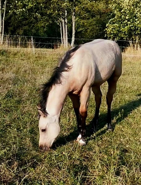Feet in White Socks aka Bailey ist am 26.04.2024 geboren und ein super schicker und vor allem braver American Quarter Horse Hengst. Bailey hat volles Papier. Sein Vater : FOOTYS FINEST STEP Seine Mutter : JOSIES GOLDEN FROST Über seine Eltern 7 Pannel n/n Da er ein hervoragendes Papier besitzt, ist er sowohl für die Zucht als auch für Turniere sehr interessant. Der kleine Mann hat Charakter, Ausdruck und sein Body ist zum dahin schmelzen. Mit ca 9 Monaten wurde er schonend abgesetzt, aktuell wächst er zusammen mit seinem gleichaltrigen Kumpel und einem 4 jährigen im Offenstall auf. Bailey ist ein absoluter Bewegungskünstler in allen 3 GGA . Er ist souverän, dem Menschen extrem zugewandt und anderen Pferden absolut sozial. Er kennt das Anhänger fahren, angebunden zu sein, ist artig beim Schmied , absolut unerschrocken , liebt es spazieren zu gehen, zu kuscheln und auf Entdeckungstour zu gehen . Er ist kerngesund, regelmäßig entwurmt, dem Hufschmied vorgestellt, Zähne wurden ebenfalls kontrolliert und er ist Tetanus geimpft . Kontakt zum Züchter besteht, nach wie vor und hier kann ebenfalls auch der Kontakt für die neuen Besitzer hergestellt werden. Es handelt sich um keinen Notverkauf !!! Näheres gerne im persönlichen Gespräch . Bailey ist Tetanus geimpft , regelmäßig entwurmt und dem Hufschmied vorgestellt worden, ebenfalls war auch die Zahnärztin da, die natürlich noch nichts machen musste, ( Altersbedingt ) aber wir lassen jedes unserer Pferde regelmäßig kontrollieren und bei Bedarf natürlich auch behandeln . Vorbeikommen, anschauen, verlieben.... Preis der Qualität entsprechend.