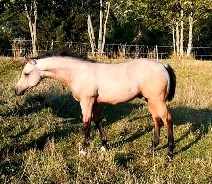 American Quarter Horse Jährling Hengst in der Farbe Buckskin