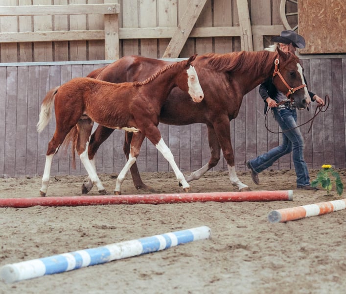 Our Hugo is looking for his future carrot giver for life 🥕 Since he was a foal, he has proven to be an exceptionally friendly, eager to learn, and pleasant young stallion. ✅ Knows the foal-ABC ✅ Well-behaved at the blacksmith ✅ Easily tolerates grooming and washing ✅ Shows calm, attentive, and balanced behavior in daily handling With his reining and ranch horse pedigree, Hugo has excellent prospects for a versatile future. His smooth, elastic movements and friendly nature suggest a bright future—whether in Western riding or as a reliable leisure partner. 🤎 🏆 At the PHCG Foal Show in Stoßberg, Hugo took 1st place among colt foals with an overall score of 7.85 and was awarded the PHCG Premium Foal distinction.