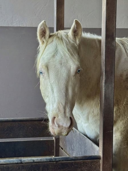 Cream-colored stallion with top foundation pedigree (grandson of Wimpy)