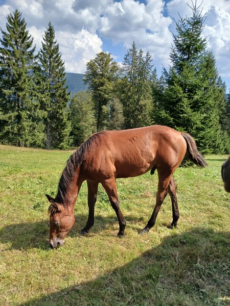 Stormy is a very friendly and trusting stallion. He has a large frame with solid, strong bones. Good pedigree – suitable for sport and also ideal for ambitious recreational riders. Clear-headed. He is growing up healthy on our extensive Black Forest pastures, within the herd. **Please note that entering the farm and pastures for viewing, as well as riding our sale horses, is always at your own risk! We exclude any liability! A test ride of our sale horses costs €50. This amount will be credited back if you purchase a horse.**
