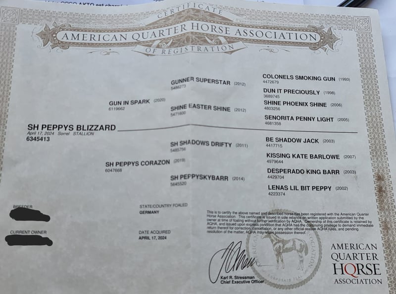Blizzard is a stunning and friendly stallion with an attractive build and solid, strong bones. Excellent pedigree—suitable for sport and also ideal for ambitious leisure riders. Clear-minded and very affectionate. He is growing healthily on our large Black Forest pastures, living in a herd. Both parents are 5-panel N/N tested. **Please note that entering the farm and pastures for viewings, as well as riding sale horses, is always at your own risk! We exclude any liability!** A fee of €50 applies for trial riding our sale horses. This amount will be deducted from the purchase price if you buy a horse.**
