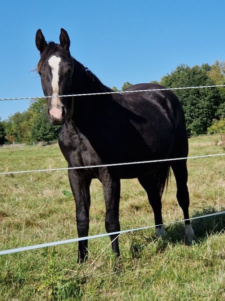 Treats N Diamonds - ein bildschöner, junger Quarter Horse Hengst mit hervorragendem Fundament, kräftigen Gelenken und sehr guter Bemuskelung. Er zeigt sich bereits jetzt weit entwickelt und gesund. Sein korrekter Körperbau, sein harmonisches Erscheinungsbild und seine tolle Farbe (black) machen ihn zu einem echten Eyecatcher mit Zukunftspotenzial - sowohl im Sport als auch im Freizeitbereich. 2024 geboren mit einem Endmaß von ca. 152 cm. Tristan wächst artgerecht in einer Hengstaufzucht auf und ist bestens sozialisiert. Er ist freundlich, neugierig, menschenbezogen und lernwillig. Tierarzt und Hufschmied kennt er bereits, ist halfterführig, altersgemäß geimpft und entwurmt. Seine Abstammung lässt keine Wünsche offen: Er entstammt einer erstklassigen Reining-Linie und ist NRHA Germany einbezahlt. Tristan ist ein Sohn von One Shiney Treat, ein Sohn vom 10,2 Mio Dollar Sire Shining Spark. One Shiney Treats Mutter, HAGANDAZ, ist eine Money earning& producing GRAYS STARLIGHT-Tochter. Sie gewann $49,289 in NCHA & NRCHA Events, und produzierte erfolgreiche Performance Nachzucht, mit insgesamt über $65.616 (NRHA, NCHA& NRCHA). Tristans Mutter, Miss Tiffany Chic, wurde erfolgreich geshowt und ist eine Puro Chic Tochter. Tristans Geschwister aus der gleichen Mutterlinie konnten sich bereits erfolgreich im Reining-Sport (Open) beweisen. Ein aktueller 6-Panel-Test liegt über die Eltern und zusätzlich durch einen eigenen Test vor - er ist N/N. Treats N Diamonds wird mit AQHA-Papieren und Equidenpass abgegeben. Dank seiner erstklassigen Reining-Abstammung und der NRHA Germany Einzahlung stehen ihm alle Wege offen - sei es im Sport, auf Turnieren oder als vielseitiger Freizeitpartner.