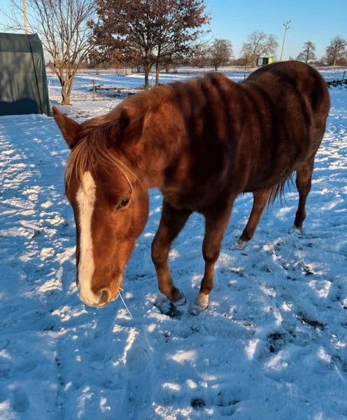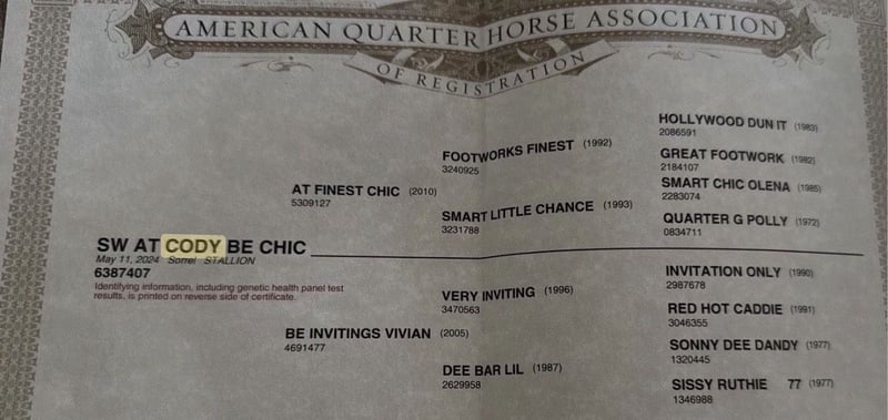 SW At Cody Be Chic - dieser niedliche QH Jährlingshengst, 05.2024 geboren mit einem geschätzten Endmaß von 152-154 cm, sucht ein förderndes Zuhause. Cody vereint die besten Reining Linien mit den besten Allround Linien. Väterlicherseits hat er Hollywood Dunit/Smart Chic Olena im Pedigree, mütterlicherseits Invitation Only/Sonny Dee Bar. Der Jährlingshengst ist ein ganz neugieriger, ausgeglichener Kerl, der gerne gekuschelt werden will und mit seinen Kumpels spielt. Cody wächst im Offenstall mit Gleichaltrigen auf. Ist gut gebaut, gesund und 6-Panel n/n. Er kennt das Fohlen ABC, ist halfterführig sowie brav beim Tierarzt. Huftraining sind wir noch dabei. Muss man noch weiter ausbauen. Cody ist offen für alle Disziplinen. Wird unterm Sattel sicherlich mal ein ganz toller Begleiter, egal ob Turnier oder in der Freizeit. Kann auf Wunsch gelegt werden bei Kostenübernahme