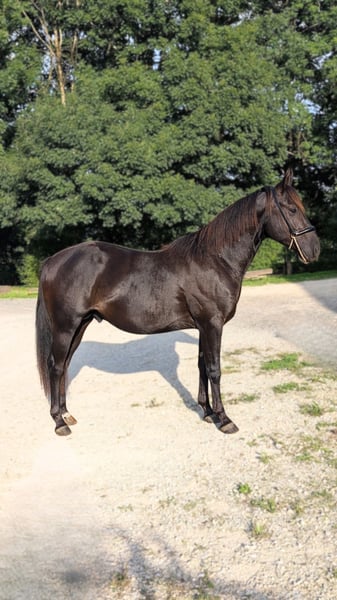 N’Joy – Stunning 3-Year-Old Quarter Horse Stallion with an Exceptional Temperament ✨ FOR SALE – N’Joy is a magnificent black Quarter Horse colt born on May 10, 2023, with a radiant coat and a remarkable disposition! ✨ This young stallion combines gentleness, calm, and outstanding cooperation. Easy to handle and educate, N’Joy shows impressive receptiveness to training. He’s the ideal partner for riders of all levels — whether you’re looking for a future sport horse, a ranch companion, or a balanced and promising partner. 🧬 Exceptional Bloodlines N’Joy descends from a prestigious lineage of proven and recognized Quarter Horses. His sire, Jagger De Ribier, is a descendant of Fritz Peppy One, renowned for his strong cattle-working genetics and excellent abilities in ranch riding and reining. On the dam’s side, Dual Face Bandit is the daughter of Dont Miss My Guns, himself a son of the legendary Colonels Smoking Gun (Gunner) — one of the most influential sires in reining history. His pedigree also includes iconic horses such as Dualin For Me, Coronas Missin Star, Azuls Caliente, and Spritzer Fritz, along with legendary names like Three Bars, Top Deck, and Go Man Go, foundations of the Quarter Horse breed known for passing on speed, agility, and a remarkable mindset. These prestigious bloodlines make N’Joy an exceptional candidate for both competition and breeding. 🎯 Why Choose N’Joy? Golden temperament, suitable for multiple disciplines Easy to educate, connected, and willing Solid genetics from champion lines High athletic and breeding potential 📞 Don’t miss out on this future champion! --------------- ALEGRIA - Find the horse of your dreams 🐎 and create a unique relationship based on trust and complicity 🤍. At Alegria, we know that buying a horse is much more than just a transaction. It's about finding a life partner with whom you will build a solid and fulfilling relationship. 🌟 We offer you expert support every step of the way, so that you can make an informed choice and start this adventure with complete peace of mind. Why choose Alegria? Personalised support to guide you in your choice. We help you find the horse that matches your personality, expectations and skills, so that the relationship that develops with him is fluid and natural. ✨ Our team of experts will advise you, guide you and support you every step of the way so that you make an informed choice, without rushing. Horses bred in an environment conducive to their well-being. Our horses are reared in exceptional conditions, where they benefit from gentle, respectful training 🕊️, based on our exclusive "Relation de Complicité" method. Each horse is prepared to be a reliable, responsive and balanced partner, ready to build a relationship of trust with you. Quality care to ensure optimum health. The well-being of our horses is paramount. 🩺 They are regularly monitored by animal health experts: vets, osteopaths, farriers and dentists. This medical monitoring guarantees that your horse will be in tip-top shape, ready to start this new relationship with you under the best possible conditions. Transparent monitoring thanks to progress sheets. Each horse has a detailed progress sheet 📋 so you can find out its exact level, strengths and character. This transparency gives you all the keys you need to choose the horse that will meet your expectations and the relationship you want to build with him. Ongoing support to ensure your relationship is a success. At Alegria, we believe that a lasting relationship cannot be improvised. That's why we stay by your side after the purchase 🤝 with a personalised follow-up to help you build a real bond with your horse. Thanks to our face-to-face and distance learning courses, you'll learn to understand your horse better and strengthen the foundations of your relationship. Testimonials from satisfied customers. We have helped hundreds of riders with their projects. 🌟 100% of our customers are satisfied with the support and the relationship they have developed with their horse. Their testimonials are the best proof of the quality of our work and the success of the relationships we foster. Find the horse that's right for you. Discover our selection of exceptional horses 🐴 and start imagining the relationship you're going to create with him. Consult the progress sheets and let our team of experts guide you to find the horse that meets your expectations. 🌐 Discover our selection of horses on www.alegriacomplicite.com and start building the relationship of your dreams. Alegria - Find the horse that suits you 🐎 and create a relationship based on trust and complicity 🤍.