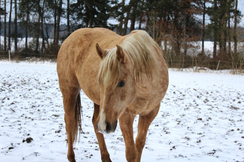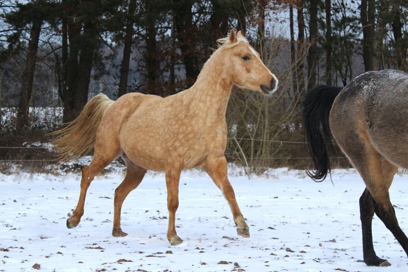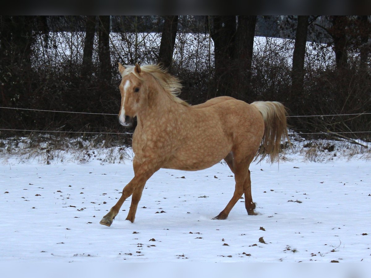 Hübscher QH Hengst Palomino geb. 04/2023 Aktuell ca. 1,48m groß AQHA Papiere und DQHA Pass Aufgewachsen im Herdenverband in 24 Std. Weidenhaltung auf unterschiedlichen Koppeln an Straßen, Wald und Wanderwegen und Laufstall mit Koppelgang, dadurch sehr gut sozialisiert und trittsicher. Neugierig und aufgeschlossen, freundlich und ehrlich, fein und aufmerksam. Durfte in Ruhe und mit Spielkameraden groß werden und auf weitläufigen Flächen toben. Kennt geputzt werden und Hufe geben, das Gelände durch das am Halfter geführte Versetzten, zusammen mit der restlichen Herde, ansonsten roh und unverbraucht. Könnte auf Wunsch zur weiteren Aufzucht noch vor Ort stehen bleiben oder auch zeitnah seine Köfferchen packen. Bei Interesse kann er gerne kennengelernt und angesehen werden.