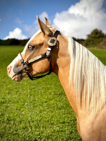 Mobsters Smart Gun - ein junger Quarter Horse Hengst in der besonderen Farbe Palomino mit zwei blauen Augen, geboren am 24.05.2023. Er besticht als absoluter Eyecatcher durch seinen korrekten, kompakten und kräftigen Körperbau sowie eine sehr gute Bemuskelung. Sein aktuelles Stockmaß beträgt 141 cm, das Endmaß wird bei etwa 145 cm liegen. Er wächst artgerecht im Herdenverband mit Hengsten und Wallachen auf und kennt sowohl Offenstall- als auch Weidehaltung. Der Hengst ist gesund, eine große AKU mit 18 Röntgenbildern liegt vor, er ist 6-Panel n/n, regelmäßig geimpft und entwurmt und an Tierarzt sowie Hufschmied gewöhnt. Charakterlich zeigt er sich ausgesprochen lieb, anhänglich, menschenbezogen und verschmust, zugleich sehr zutraulich, entspannt und unerschrocken. Trotz seiner Gelassenheit ist er sensibel, reaktionsschnell und fein im Umgang und wirkt keinesfalls abgestumpft. Er wird regelmäßig gehändelt, ist brav und unkompliziert, kennt das Fohlen-1×1, ist halfterführig und geht problemlos auf den Anhänger. Seine raumgreifenden Gangarten und sein Reining-Pedigree der Extraklasse (HF Mobster x Gunnatrashya)machen ihn zu einem vielversprechenden Nachwuchspferd, das sowohl im Showring als auch im Freizeitbereich überzeugen wird. Mit seinem Potenzial und seinem Charakter aus Gold ist dieser Youngster ein echtes Versprechen für die Zukunft. Er ist NRHA-registriert und besitzt eine Lebensversicherung (dauerhafte Unbrauchbarkeit ist mit drin), die auf Wunsch mit übernommen werden kann.