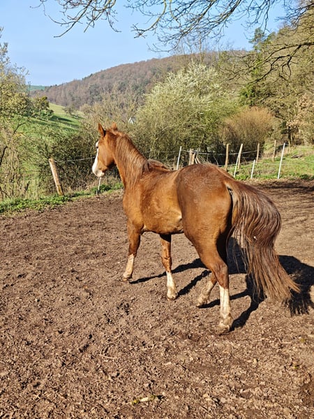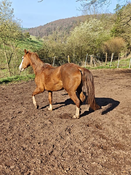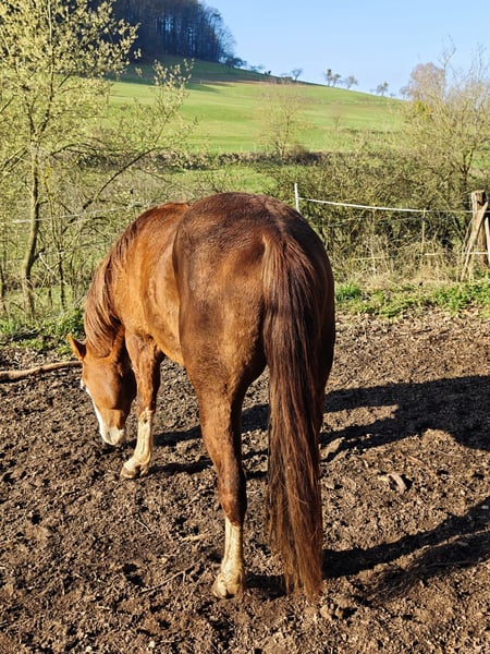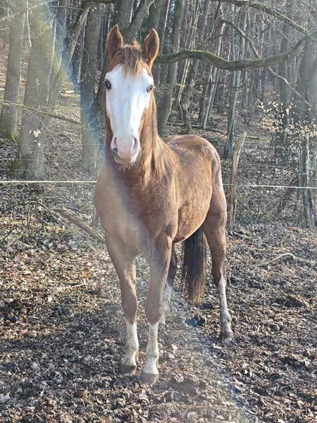 BS Topgun Revolution, Quarter Horse / Paint Horse , geboren am 26.06.2023, präsentiert sich dieser Hengst in der edlen Farbe Chestnut als echter Blickfang mit Qualität und Ausstrahlung. Mit einem zu erwartenden Endmaß von ca. 154 cm wird er auch größere Reiter optimal abdecken. Er ist doppelt registriert (AQHA & APHA) und wird mit vollständigen Papieren sowie Equidenpass abgegeben. Schon jetzt begeistert dieser außergewöhnlich typvolle Junghengst mit seinem korrekten, stabilen Gebäude, einer sehr harmonischen Entwicklung und einem ausdrucksstarken Gesicht, das sofort im Gedächtnis bleibt. Ein Pferd, das nicht nur optisch überzeugt, sondern auch langfristig Potenzial verspricht. Charakterlich lässt er kaum Wünsche offen: freundlich, menschenbezogen und absolut unkompliziert im Umgang. Er sucht die Nähe zum Menschen, ist verschmust und genießt jede Aufmerksamkeit. Gerade diese Kombination aus gutem Charakter und natürlicher Gelassenheit macht ihn zu einem idealen Partner für den weiteren Aufbau. Er wächst artgerecht im Herdenverband mit anderen Jungpferden auf, kennt Tierarzt und Hufschmied und ist halfterführig. Auch das Verladen meistert er souverän und entspannt. Der Hengst durfte bislang in Ruhe aufwachsen - beste Voraussetzungen für ein gesundes, belastbares Reitpferd. Er ist topfit und 6-Panel n/n getestet. Es liegen ebenso Gentests auf Taubheit und Blindheit vor, beides n/n. Seine Abstammung mit Ausrichtung auf Reining (Pale Face Dunnit x Gunners Revolution Enkel) sowie seine ansprechenden Bewegungen eröffnen vielseitige Perspektiven - ob auf dem Turnier oder als hochwertiges Freizeitpferd. Jetzt ist genau der richtige Zeitpunkt, um mit seiner Ausbildung zu beginnen und ihn nach eigenen Vorstellungen zu formen. Auf Wunsch kann er vor Ort noch kastriert werden. Ein Pferd für Menschen mit Anspruch - für jemanden, der nicht irgendein Pferd sucht, sondern einen Partner mit Qualität, Charakter und Zukunft.