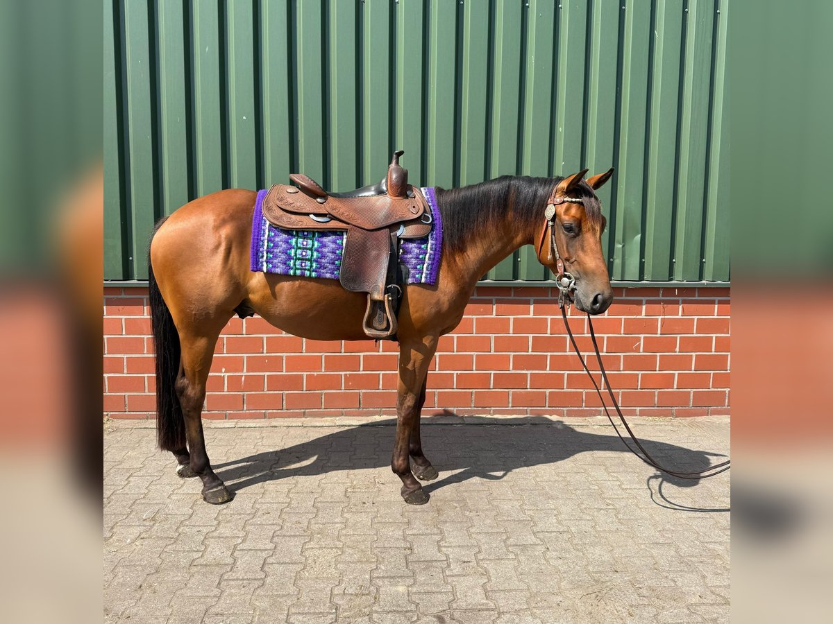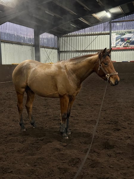Chip Trick - Bildhübscher, korrekt gebauter und kompakter Quarter Horse Hengst (2022 geboren) in der Farbe bay steht zum Verkauf . Mit einem geschätzten Endmaß von ca. 152 cm ist er bestens proportioniert und überzeugt durch sein tolles Exterieur. Der Hengst durfte in Ruhe aufwachsen und wurde bewusst später gestartet. Chip ist 6-Panel n/n, regelmäßig geimpft und entwurmt, schmiede- sowie verladefromm. Aktuell steht er in einer Paddockbox mit täglichem Auslauf, zuvor lebte er in Weidehaltung in einer gemischten Junghengst-/Wallachgruppe - dementsprechend ist er gut sozialisiert. Charakterlich zeigt er sich freundlich, menschenbezogen und brav. Er bringt einen klaren Kopf, einen super Mind und viel Talent für Reining/Allround mit. Zeigt sehr gute Gangarten für Ranch Riding etc. Chip Trick befindet sich seit März im professionellen Training und ist unterm Sattel bereits gut gefördert. In der täglichen Arbeit zeigt er ein tolles Bewegungspotential und vermittelt ein gutes Reitgefühl. Seine Manöver sind vielversprechend. Der Hengst stammt aus einer erstklassigen Reining-Abstammung. Sein Vater ist der erfolgreich geshowte High Roller Whiz (LTE: 127.000 $). Chips Mutter wurde ebenfalls turniermäßig vorgestellt. Seine Geschwister aus der Mutterlinie sind bereits erfolgreich in Reining/Open-Klassen gelaufen. Damit ist er nicht nur ein tolles Turnierpferd mit Zukunft, sondern eignet sich auch ideal als Freizeitpartner mit Qualität. Chip Trick ist NRHA Germany und Europe einbezahlt. Ein Nachwuchspferd mit Perspektive - für Sport und Freizeit gleichermaßen geeignet.