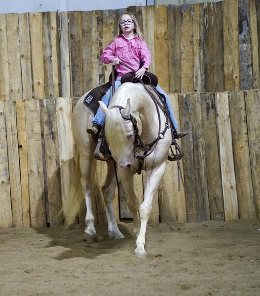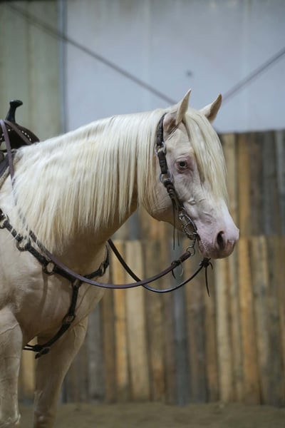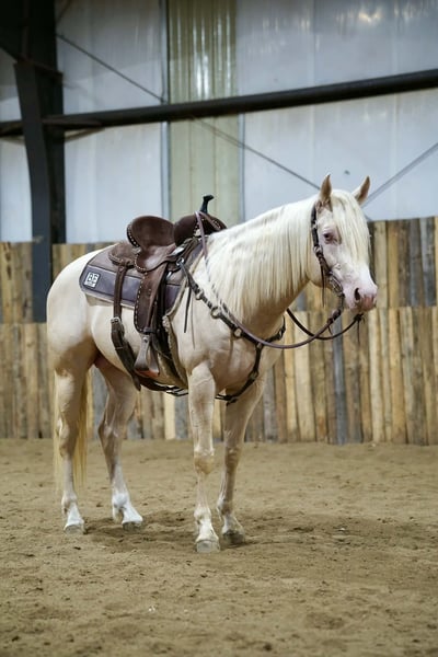 Shiny French Boy 5 Yr old 15hh Cremello AQHA Stallion