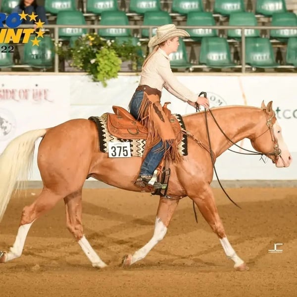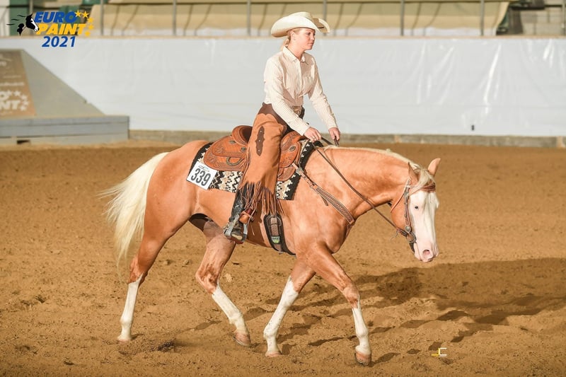 Semental joven muy tiposo con una base estable y correcta, a la vez atlético y fuerte en movimiento. Muestra andares planos y elásticos e impresiona por su carisma. Genes de color: salpicadura 1, salpicadura 2 5 Panel negativo: PSSM1 n/n, Herda n/n, HYPP n/n, MH n/n, GBED n/gbed, OLWS n/n Tarifa de cubierta: 550 € más gastos de manejo Se porta muy bien y es fácil de entrenar, lo que siempre transmite a su descendencia. Además, su sólido pedigrí de Reining/Ranch inspira y lo convierte a él y a su descendencia en un gran compañero de ocio y caballo de exhibición ranchero. Éxitos: -Prueba de rendimiento de sementales PHCG -Campeón bávaro verde Reining -Campeón bávaro de equitación ranchera -Campeón bávaro Ranch Rail Pleasure - Medalla de Bronce Euro Paint Ranch Rail Pleasure -Los 10 mejores Ranch Riding Euro Paint Éxito de la descendencia: -2023 Campeón Europeo Reserva 2 años castrados -2023 PHCG Campeón de Madurez 2 años Semental/Castrado -Ganador de la exposición de potros PHCG 2023 con prima de 1A con 8.1 -2022 5º Semental Destetado PHCG Futurity - Potro premium DQHA 1A 2021 con 81.78% -Potro premium PHCG 1b 2021 con 7.6 -Potro premium DQHA 1b 2021 con 77.84% -Potro premium PHCG 1A 2021 con 8.1