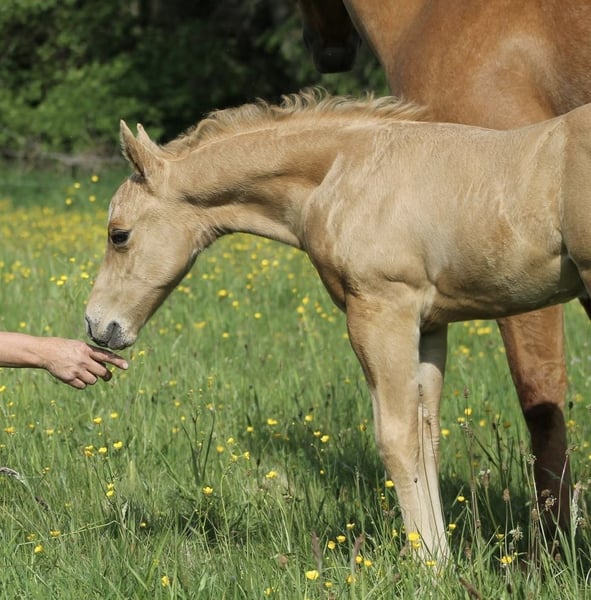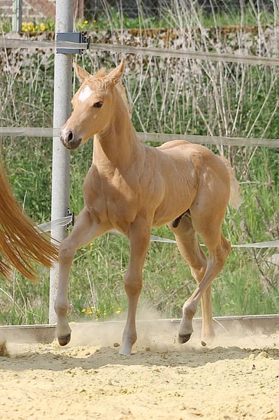 **Sales Advertisement: American Quarter Horse Stallion** For sale is a promising American Quarter Horse colt, born on May 1, 2025. This beautiful palomino not only impresses with his striking color but also with his friendly character and excellent potential. If you are looking for a talented and charming horse that will bring you much joy, then this young man is just right for you! He can stay for raising! For inquiries or further information, please contact us. We look forward to your message!