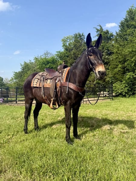 ONLINE AUCTION Place your bids at www.PlatinumEquineAuction.com Starting Bid $3500 Auction ends June 1st, 2025 Need a new saddle? Check out White Rock Saddles on our website or Facebook! Garth is a 13 year old John mule that stands 15.1 hands tall. This is well trained mule with uncountable trail miles. He is a kind mule that aims to please and loves people. Garth is awesome and the trail and very sure footed. He doesn’t look for imaginary things to spook at and is traffic safe. He is fine with trail dogs, rides out alone and in groups of any size. This mule walks calmly on a loose rein, has a nice collected trot and a very smooth canter. He crosses down trees patiently and maneuvers himself with confidence on the rough trails. Garth is over all a nice quiet trail mount that is safe and appealing to the eye. He is a really nice build and is comfortable to sit. Located in Moscow, OH. Contact Brandenburg Stables Zach 513-508-3684 with any questions, to make a Buy It Now Offer or to set up a time to come see him. ONLINE AUCTION Place your bids at www.PlatinumEquineAuction.com Starting Bid $3500 Auction ends June 1st, 2025 Need a new saddle? Check out White Rock Saddles on our website or Facebook!