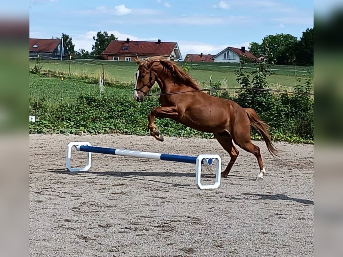 For sale here is my 5-year-old Half American Saddlebred gelding. He is a four-gaited horse with a height of 150 cm. Not suitable for beginners or children. Very sensitive, easy to ride, and hardworking, with high, expressive, and expansive movements. He requires a rider who can provide him with security both in riding and handling. He is a one-person horse. American pedigree and FN passport. Mother: Icelandic, Father: American Saddlebred. Half-brother to the Swedish breeding stallion "Playgirl’s Next Golden Star GPZ." Brought over from Germany. He has a mild dust allergy, which is easy to manage. Currently kept in an open stall. He is currently barefoot but has also worn shoes before. X-rays can be provided upon request. His tack can be purchased separately (+€500) if desired.