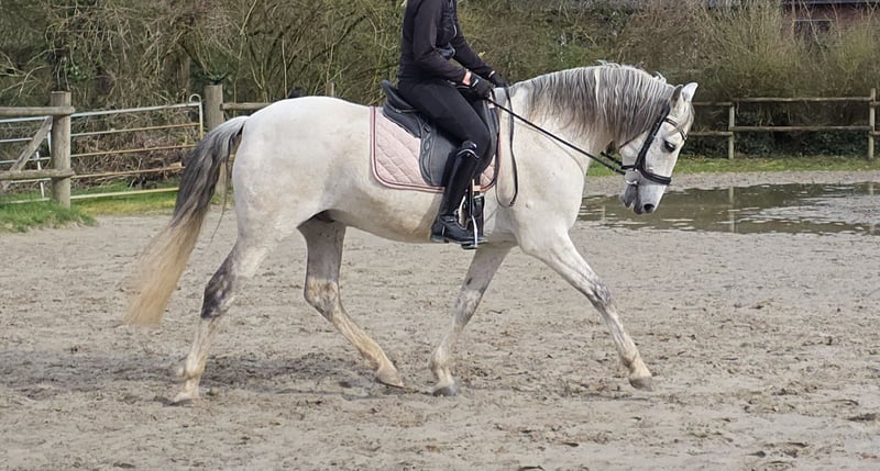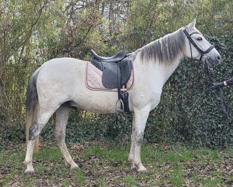 Jonny ist ein ca. 156 cm großer Spanier, seit 2018 ist er in Deutschland. Jonny ist ein tolles Pferd für die ganze Familie. In der Dressur ist er auf A- Niveau, er kennt kleinere Hindernisse und er geht super ins Gelände. Ansonsten hat er schon an Working Equitation Lehrgängen teilgenommen, er kennt Ausritte mit Handpferd, Pferdefußball, Antischrecktraining, Bodenarbeit uvm. Jonny ist ein soooo cooles Kerlchen. Auch im Umgang ist er ein Schätzchen, er ist herdenverträglich, ist schmiede und auch verladefromm. Bisher war er immer gesund, er ist ein ganz robustes Pferd. Jonny wird mit Zubehör verkauft. Bei Interesse an Videos, schreiben Sie uns doch bitte direkt über WhatsApp an: 0177/2721831. Für noch mehr Infos, bitte direkt anrufen. Wir freuen uns auf Sie.