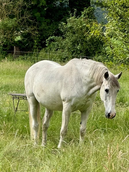 Questo bel grigio è un sensibile. Diffida profondamente delle persone sconosciute, ma cerca in un certo modo il contatto con il suo umano. Non c'è modo di mettergli il capestro o di parlargli se non si è completamente rilassati. Quando il grigio segue la sua routine abituale, si riesce a gestirlo bene con il suo modo speciale. È facile da alimentare, occupa una posizione media nel branco, a volte si interessa alle fattrici e non ha malattie che richiedano trattamenti costanti. Il cavallo proviene da un sequestro da parte dell'ufficio veterinario, che è anche il venditore. La futura sistemazione sarà controllata in anticipo. Viene ceduto esclusivamente in stalla all'aperto con compagnia di altri cavalli. Per favore, non inviatemi il modulo standard e sperate che io faccia il resto. Sarebbe bello se poteste scrivere un po' su di voi e sul vostro modo di tenere i cavalli. Oppure chiamatemi semplicemente!!!