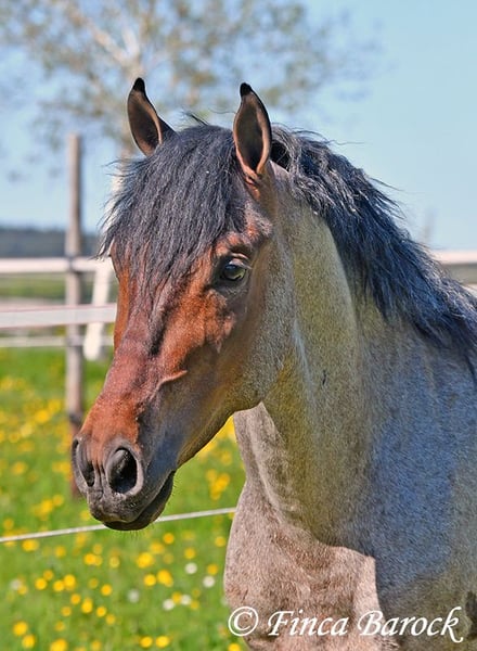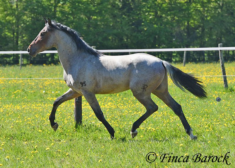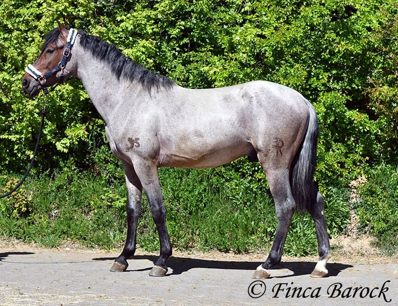 Rasse: Andalusier Name: Paulino Geschlecht: Wallach Stockmaß: zz 148 cm (steht noch voll im Wachstum) Alter: 15.09.2023 Farbe: Roan Preis: 5900 € Vater: o. P. Mutter: o. P. Paulino vereint die Sonderfarbe Roan mit einem mega freundlichem Charakter und guten Bewegungen! Der kleine Bub steht noch voll im Wachstum und wird noch ein paar cm wachsen und allgemein auslegen. Er ist in den GGA anlongiert und ein echter Gentleman. Paulino ist gut erzogen, kennt die üblichen Hofgeräuche und Hunde. Spaziergänge findet er spannend und freut sich neues zu entdecken! Insgesamt zeigt er sich mutig und aufgeschlossen! Dem Menschen gegenüber ist er zugewandt und verschmust. Herdenhaltung gewöhnt. Mit Paulino bekommt man einen echten Rohdiamanten zum selbst Ausbilden. Mit seinem unerschrockenem Wesen und seiner Wendigkeit können wir uns ihn auch gut in der Working Equitation vorstellen. Kontakt: Finca Barock, Tel. 0173-696 31 81,56291 Wiebelsheim