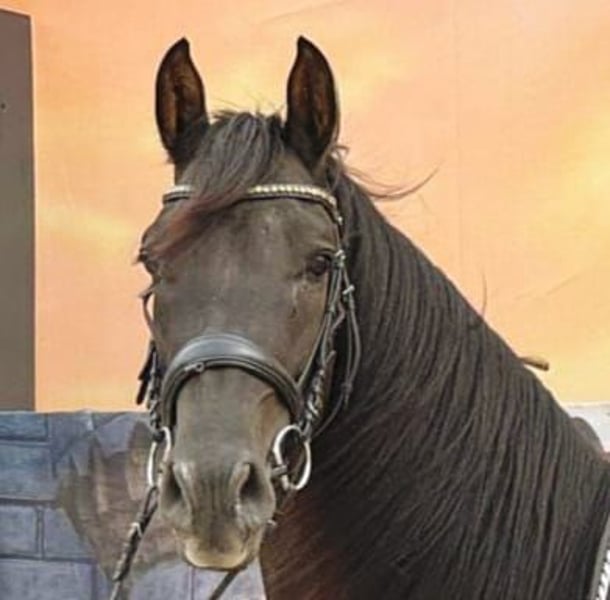 Deze knappe, glanzzwart Andalusiërhengst werd geboren in 2021 en meet momenteel ongeveer 1,60 m. Hij valt op door zijn correcte bouw, zijn elegante uitstraling en vooral door zijn bijzonder vriendelijke karakter. Mensen toont hij zeer betrokken, vriendelijk, speels en open. Ondanks zijn jonge leeftijd is hij al opmerkelijk rustig in de omgang en altijd braaf – zowel bij de dierenarts als bij de hoefsmid. Hij is regelmatig ontwormd en gevaccineerd, beschikt over een paspoort en is vertrouwd met verschillende huisvestingsvormen, waaronder boxen met weidegang en groepshuisvesting. Hij is nog in ontwikkeling, passend bij zijn leeftijd, maar is al speels en met veel geduld onder het zadel gebracht. Onder het zadel toont hij leergierig, attent en veelzijdig inzetbaar. Hij heeft al ervaring opgedaan in het buitenrijden en op de weg en heeft deze soepel doorstaan. Daarnaast zijn eerste lessen in grondwerk en de discipline van de zirkeltraining met hem ontwikkeld – het behendigheidsspel beheerst hij al, het zittend maken is momenteel in opbouw, en ook de piaffe is voorzichtig geïntroduceerd. Deze jonge hengst beschikt over alle eigenschappen om uit te groeien tot een betrouwbare partner. Hij is vooral geschikt voor ruiters die met geduld en gevoel een jong paard willen verder opleiden en samen willen groeien.