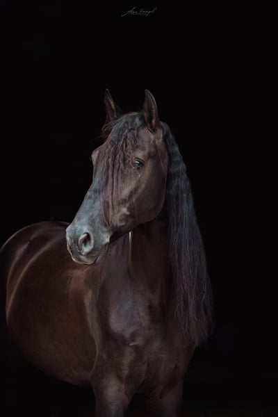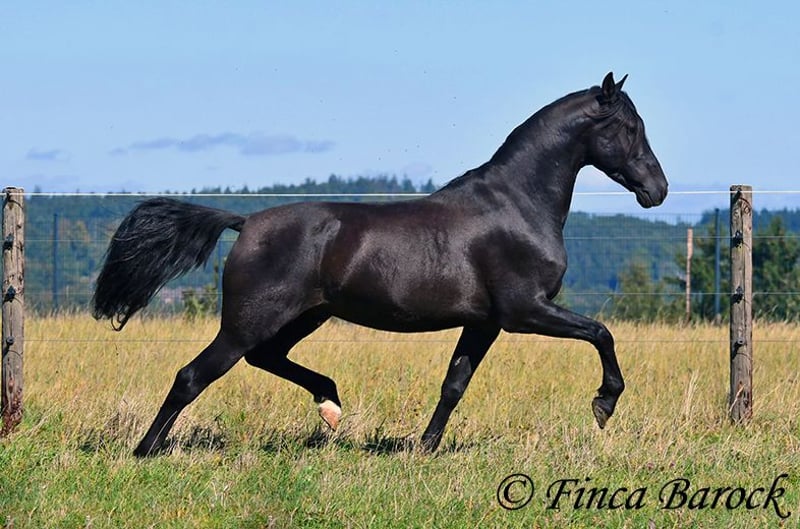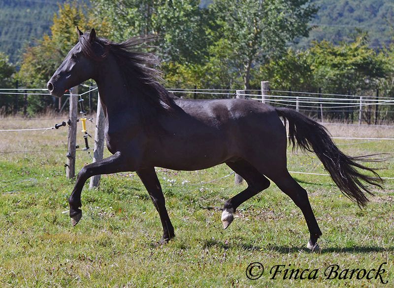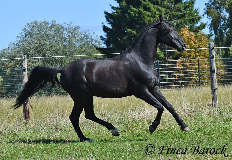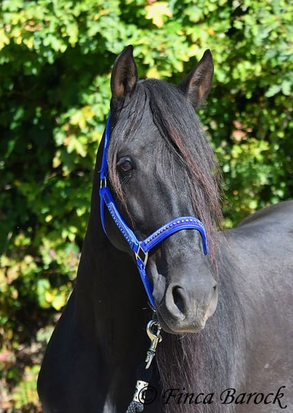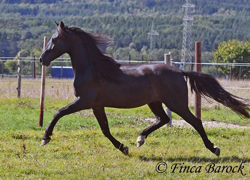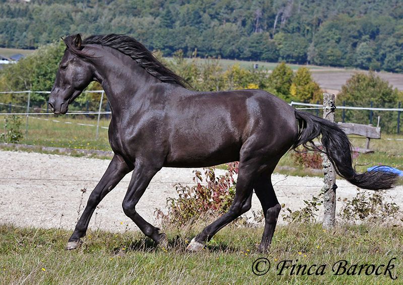 Breed: Andalusian Name: Silencio Gender: Gelding Height: 158 cm Date of Birth: 12.10.2019 Color: Black Price: €11,999 Sire: n/a Dam: n/a Here come the Men In Black! Silencio is a stylish, jet-black boy with a friendly character. He also has a super beautiful long mane, which makes him a total eye-catcher. Silencio has been started under saddle in the basic gaits. He is more familiar with trail riding than working in the arena. He is currently being further trained with us. He shows a willingness to work, is easy to ride on the bit, and has comfortable movements. He has also already been introduced to pole work and cavaletti work. In jumping, he shows a lot of joy and could definitely be further developed in this area. Silencio really enjoys trail riding and shows great confidence when out alone. He may take a moment to investigate the unknown, but he is easily convinced to move past new things. In handling, Silencio is a bit reserved; he observes new people cautiously at first. However, over time, curiosity prevails, and he comes to see who is lingering around his box. Once he knows his person, he is very affectionate. Overall, he is playful, sometimes rearranging the blankets in front of his box, carrying cones around the arena while free running, and is thrilled when someone watches him. Just living by the motto – am I doing well? <3 A great, unspoiled boy who has already received a solid foundation and is waiting to experience more adventures. Contact: Finca Barock, Tel. 0173-696 31 81, 56291 Wiebelsheim