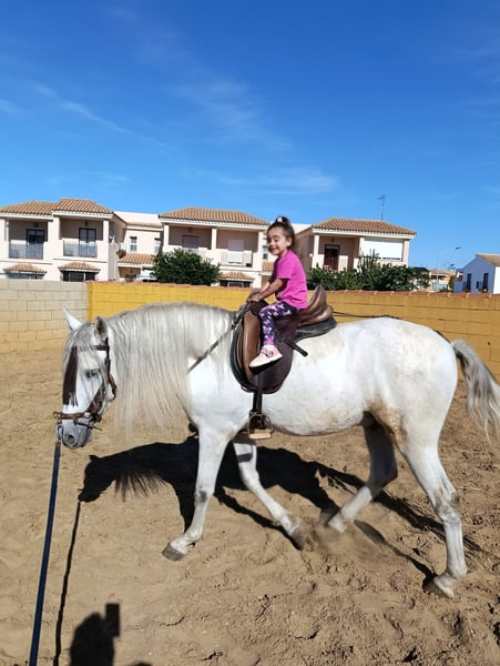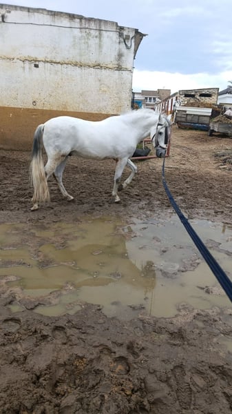 Se vende precioso caballo Pura Raza Española, capado, de capa torda, con casi 6 años y una alzada aproximada de 1,63 m. Caballo de tipo barroco, bien hecho, con buena estructura y hueso, muy armónico y expresivo. Destaca por su buen carácter, noble y colaborador, adecuado tanto para doma clásica a nivel base como para paseo y disfrute. Tiene doma base: conoce el trabajo en pista, va a los tres aires de forma regular y equilibrada. Ha estado en la feria, se comporta correctamente en ambientes con movimiento, música y público, mostrando buena cabeza y tranquilidad. Es un caballo versátil, apto para un jinete amateur con algo de experiencia o para alguien que quiera seguir formándolo con calma. También adecuado para disfrutar en salidas al campo. Cuenta con buena genealogía, típica del PRE, que le aporta presencia, funcionalidad y proyección. Se entrega sano, bien cuidado y al día de manejo habitual. 📍 Ubicación: España 📩 Más información, fotos y vídeos por privado. 🇬🇧 ENGLISH Grey PRE gelding, almost 6 years old – 1.63 m – Basic training – Ideal for dressage or leisure riding Beautiful Purebred Spanish Horse (PRE) for sale, gelded, grey, almost 6 years old, with an approximate height of 1.63 m. A baroque-type horse, well built, with good bone and structure, very harmonious and expressive. He stands out for his good character, noble and willing, suitable both for basic level dressage and for leisure riding. He has basic training: works correctly in the arena and shows the three regular and balanced gaits. He has been to the fair, behaving calmly and correctly in busy environments with music and public, showing a good mind and composure. A versatile horse, suitable for an amateur rider with some experience or for someone who wishes to continue his training steadily and calmly. Also suitable for hacking and countryside rides. He has good PRE pedigree, providing presence, functionality and future potential. Sold healthy, well cared for and up to date with regular handling. 📍 Location: Spain 📩 More information, photos and videos on request. ⸻ 🇩🇪 DEUTSCH Schimmel PRE, fast 6 Jahre – 1,63 m – Grundausbildung – Ideal für Dressur oder Freizeit Zum Verkauf steht ein wunderschöner Pura Raza Española (PRE), Wallach, Schimmel, fast 6 Jahre alt, mit einer ungefähren Stockmaßhöhe von 1,63 m. Ein barocker Typ, gut gebaut, mit guter Knochenstärke und Struktur, sehr harmonisch und ausdrucksstark. Er überzeugt durch seinen guten Charakter, ist brav und kooperativ, geeignet sowohl für Dressur auf Grundniveau als auch für Freizeit- und Genussreiten. Er verfügt über eine solide Grundausbildung: kennt die Arbeit in der Reitbahn und zeigt drei gleichmäßige und ausbalancierte Grundgangarten. Er war auf der Feria, verhält sich ruhig und korrekt in lebhaften Umgebungen mit Musik und Publikum und zeigt dabei Nervenstärke und Gelassenheit. Ein vielseitiges Pferd, geeignet für einen Amateurreiter mit etwas Erfahrung oder für jemanden, der seine Ausbildung ruhig weiterführen möchte. Ebenfalls gut geeignet für Ausritte ins Gelände. Mit guter PRE-Abstammung, die ihm Ausstrahlung, Funktionalität und Entwicklungspotenzial verleiht. Wird gesund, gut gepflegt und mit regelmäßigem Handling abgegeben. 📍 Standort: Spanien 📩 Weitere Informationen, Fotos und Videos auf Anfrage.