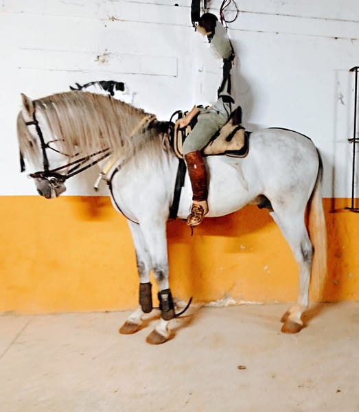 Te koop: prachtige Spaanse volbloedpaard (PRE), schimmel, bijna 6 jaar oud, met een schofthoogte van ongeveer 1,63 m. Een barokke type paard, goed gebouwd, met een stevige botstructuur en goede anatomie, zeer harmonieus en expressief. Hij valt op door zijn goede karakter, nobel en meegaand, geschikt voor zowel basale dressuur als recreatief rijden. Hij beschikt over basisopleiding: hij kent de werkingsvormen in de bak en beweegt regelmatig en evenwichtig in alle drie de gangen. Hij is op de beurs geweest, gedraagt zich rustig en correct in drukke omgevingen met muziek en publiek, en toont kalmte en goede geest. Een veelzijdig paard, geschikt voor een recreatieve ruiter met enige ervaring of voor iemand die zijn opleiding rustig verder wil ontwikkelen. Ook ideaal voor buitenritten en tochten in de natuur. Hij heeft een goede PRE-lichamelijke afstamming, wat hem uitstraling, functionaliteit en toekomstpotentieel geeft. Wordt geleverd in goede gezondheid, goed verzorgd en up-to-date met regulier omgang. 📍 Locatie: Spanje 📩 Meer informatie, foto's en video's op aanvraag.