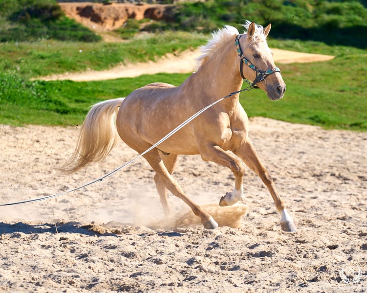 RÍNCIPE MONTE ALEGRE ♦️ 2020 | 1,60 m | Palomino ✨ Ein Pferd, das vom ersten Moment an begeistert ❤️ 🐴 Príncipe ist ein palominofarbener Wallach, dreifach weiß gezeichnet mit Aalstrich und EU-Pass. Klassisch, robust und mit beeindruckender Ausstrahlung. ✨ Ideal für Kinder und Anfänger Perfekt für Ausritte und entspanntes Reiten. Sehr gut ausgebildet, erfahren im Gelände sowie auf Messen und Veranstaltungen. 💫 Sein Charakter: Edel, ehrlich, arbeitswillig und mit hervorragendem Kopf. Sanft, unkompliziert und sehr sicher… ein echtes “Pferd fürs Leben.” 🎯 Hohes Niveau in Doma Vaquera: Galoppwechsel, direkte und inverse Pirouetten. Geht perfekt auf Trense, Kandare sowie mit zwei oder vier Zügeln. 🌿 Große, elastische und fließende Bewegungen, kompakter und schöner Körperbau. Weiches Maul und hervorragende Rittigkeit. 🛡️ Erschrickt vor nichts: 100% zuverlässig im Gelände. 📅 Geboren am 19.03.2020 ❤️ Garantie für Vertrauen, Sicherheit und Freude — ideal für Kinder und unerfahrene Reiter. 📲 Schreiben Sie uns per WhatsApp (+34 639522420) bei Fragen oder für weitere Informationen. Wir helfen Ihnen gerne weiter!