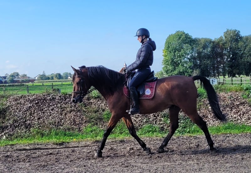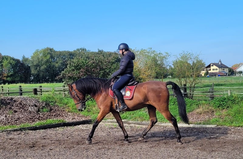 Imposing appearance, elegance, calmness, reliability ALEJANDRO is a beautiful, elegant dark brown Andalusian Cruzado gelding of the highest class, whom we can also easily imagine under a Western saddle. ALEJANDRO impresses not only with his imposing appearance but also with his calmness and serenity. His cool demeanor allows even a somewhat insecure rider to quickly gain confidence in this magnificent horse. ALEJANDRO forgives riding mistakes and responds when he senses that his rider is becoming uncertain. ALEJANDRO is a horse that literally looks out for his rider. ALEJANDRO is very easy to ride and extremely comfortable to sit on. He is very people-oriented and loves to be pampered. He especially enjoys working with children and teenagers. We have yet to discover anything that could significantly disturb this magnificent horse's calmness. Whether in the arena, all-weather arena, or on the trail, ALEJANDRO moves forward well, is not pushy, but also not too fast. ALEJANDRO is an ideal family horse that adapts to the needs of his rider, who adjusts to him. Not only under saddle but also during groundwork and in everyday handling, ALEJANDRO provides security through his good-natured temperament and demonstrates his great trust in humans. With further training, we can also envision ALEJANDRO as a THERA horse or as a teaching horse in a school setting. A horse that does not present his human with new challenges every day. For more information about our horses and our work, please visit www.ps-seitle.de or feel free to contact us by phone at 0171/5269002 Hubert Seitle 0151/12775701 Uta Großmann THERA HORSES PferdeSport Seitle in DONAUMOOS