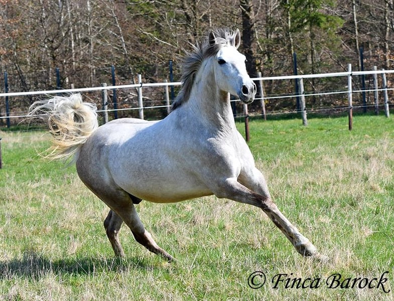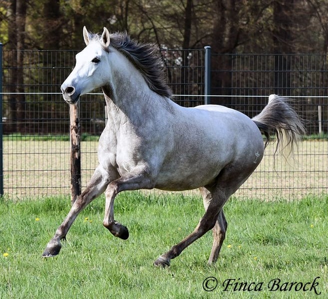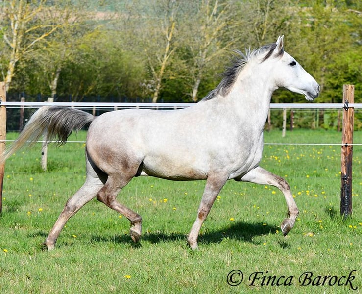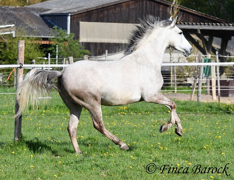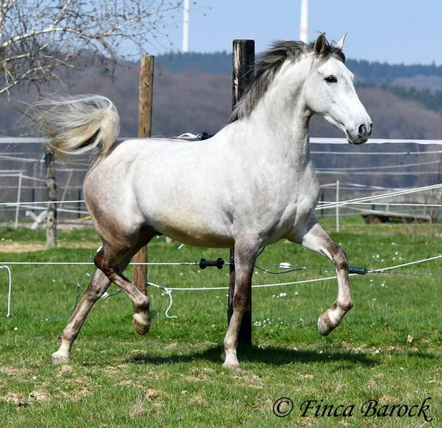 Rasse: Andalusier Name: Alioli Geschlecht: Wallach Stockmaß: 160 cm Alter: 10.07.2019 Farbe: Schimmel Preis: 12500 € Vater: o. P. Mutter: o. P. Alioli ist ein kompakter Bub und ein absoluter Schmusebär. Er liebt lange Krauleinheiten und ist sehr personenbezogen. Mal eben Heu füttern in seiner Box endet in der Regel in einer Schmuseeinheit. Alioli ist solide in den GGA geritten und hat eine gute Bacis. Er kennt auch schon Schenkelweichen und Schulterherein. Im Gelände zeigt er sich aufmerksam und neugierig. Neue Sachen sind daraus mal kurz gruselig, er lässt sich aber leicht überzeugen diese kennen zu lernen. Sobald sein Reiter ihm Sicherheit vermittelt, nimmt er dies gut an. Hervorzuheben sind seine sehr sitzbequem Bewegungen mit denen er seinen Reiter sofort ein Lächeln ins Gesicht zaubert. Durch seine rahmige Statur deckt er auch gut größere Reiter gut ab. Ein toller Partner für alle die einen kompakten, leichtrittigen Andalusier suchen der dazu noch eine absolute Schmusebacke ist <3 inkl. klinischer Untersuchung und Röntgenbildern Kontakt: Finca Barock, Tel. 0173-696 31 81, 56291 Wiebelsheim