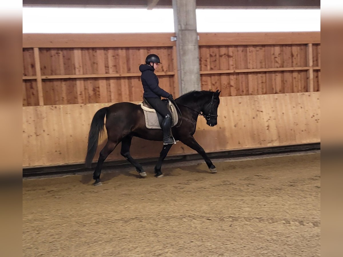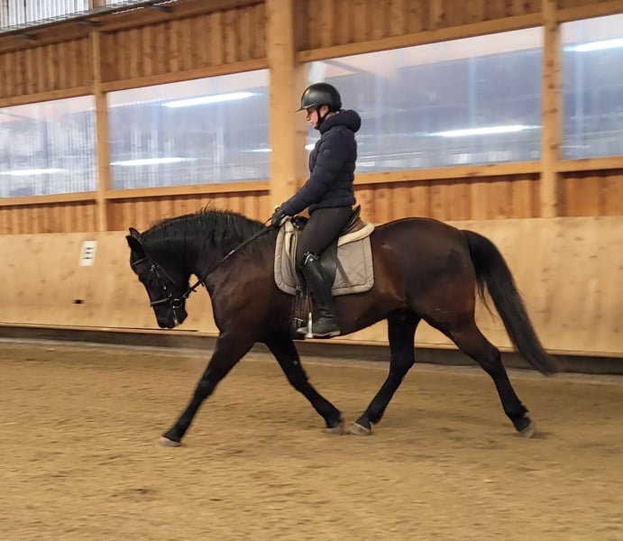 ENZO ist ein wunderschöner, kräftiger, sehr eleganter dunkelbrauner Wallach der Extraklasse. Seine Ruhe und Gelassenheit lassen auch einem noch etwas unsicheren Reiter sehr schnell Vertrauen zu diesem Prachtburschen fassen. ENZO verzeiht Reitfehler und pariert durch, wenn er merkt, dass sein Reiter unsicher wird. ENZO ist ein Pferd, dass auf seinen Reiter im wahrsten Sinne des Wortes, aufpasst. ENZO ist sehr leichtrittig und bequem zu sitzen. Er hat drei wunderschöne Grundgangarten. Er ist sehr menschenbezogen und liebt es betüddelt zu werden. Besonders liebt er die Arbeit mit Kindern und Jugendlichen. Wir haben noch nichts entdecken können, was diesen Prachtburschen großartig aus seiner Ruhe bringen hätte können. Ob im Viereck, Allwetterplatz oder im Gelände, ENZO marschiert voran, ist nicht triebig, aber auch nicht zu flott unterwegs. ENZO ist ein Pferd, dass sich den Ansprüchen seines Reiters anpasst, der sich auf seinen Reiter einstellt. Nicht nur unter dem Sattel, sondern auch bei der Bodenarbeit und im alltäglichen Umgang vermittelt ENZO durch sein gutmütiges Gemüt Sicherheit und zeigt auch sein großes Vertrauen zum Menschen. Wir können uns ENZO bei weiterer Ausbildung auch sehr gut als THERA-Pferd oder im Schulbetrieb vorstellen. Ein Pferd, dass seinen Menschen nicht jeden Tag vor neue Herausforderungen stellt. Nähere Informationen über unsere Pferde und unsere Arbeit erhalten Sie unter 0171/5269002 Hubert Seitle und 0151/12775701 Uta Großmann. Allgemeine Informationen über unsere Pferde und unsere Arbeit erhalten Sie auch unter www.ps-seitle.de