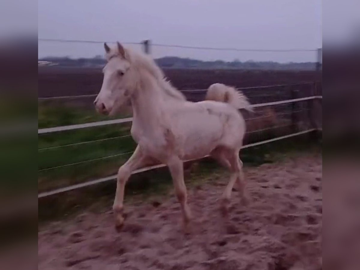 Onze Lucia Dorada doet haar naam eer aan met haar uiterlijk en gouden karakter. Ze is dan ook opzoek naar een gouden huisje. ⭐️🏡 Ze is geboren op 02.05.2025 en hinnikte al toen ze nog half in het vlies lag. Inmiddels is ze net bij haar moeder vandaan. Het is een ontzettend aanhaalderig en levendig veulen die het liefst de hele dag gekriebeld wordt. Ze heeft een zeer sterk beengebruik en zal hierdoor later zeer geschikt zijn voor de sport, al zal dit door haar mooie cremello kleur nog extra opvallen. Ze is inmiddels 2 keer bekapt, al lijkt het alsof ze dit al jaren gedaan heeft, zo braaf. Ook halster omdoen op stal of buiten is geen probleem. Verder is ze al netjes ontwormd. Haar Andalusiesche moeder is een donkere valk en haar vader net als haar een cremello. Ze is later dus ook zeer geschikt om een mooi gekleurd veulentje mee te fokken. Haar beide ouders zijn rond de 1.50m, maar haar moeder fokt behoorlijk groot, wat haar dus ook best een grote e pony kan maken. Wij zoeken echt een goed en veilig huisje voor haar, waar ze mag opgroeien samen met andere vriendjes. De vraagprijs is €2750,-