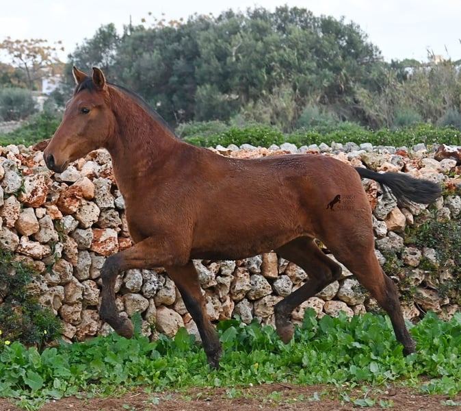 Diese 2024 geborene PRE Stute (Andalusier mit Rassenachweis der Ancce), ist jetzt schon eine atemberaubende Stute! Trotz rutschigem Untergrund, zeigt sie ganz stolz, wie viel Bewegung in ihr steckt und wie geschmeidig und flexibel sie ist. Ihr Vater ist mehrfach prämiert, sowohl für die gute Bewegung, als auch morfologisch (Zuchtschau) und ohne Zweifel hat er dieses Talent bestens vererbt. Sie wächst in der Herdenhaltung 24/7 auf, was sie sehr robust macht und sie ist bestens sozialisiert. Dank der Regensaison auf Menorca, auch etwas von Matsch paniert ;) In ihrer Abstammung finden wir den Mejorante Hengst Barquito von Guardiola, sowie den Mejorante Hengst Hebreo XIX von Escalera. Sie hat eine klassische Mischung von Guardiola und Escalera in ihren Blutlinien, was für das klassich barocke Exterieur und den feinen, menschenfreundlichen Charakter sorgt. Ihr zu erwartendes Endmaß liegt um die 160cm und dank ihrer Flexibilität und Wendigkeit, wird sie nicht nur für die Dressur, sondern auch für die Working Equitation sehr interessant werden. Solltest du sie erst später holen wollen, so kann gerne ein Aufzuchtsplatz für sie organisiert werden. Videos und Abstammung gerne auf Anfrage. Ihr Standort ist Menorca. Gerne organisiere ich vor Ort eine Fohlen-AKU,Transport oder auch ihre Reise, solltest du persönlich zum Anschauen kommen. Details dazu gerne auf meiner Seite oder im Gespräch. Saludos aus Spanien