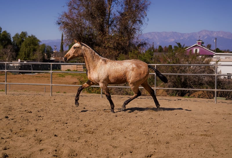 2-year-old buckskin filly is bred from outstanding Spanish lines. Her dam, La Mesera RA (ANCCE registered), descends from notable sires such as Grano de Oro JP and Firme Arm II, known for passing on strength, movement, and beauty. The mare’s pedigree traces back to AG Palomo and Diludido El Bayo, blending proven quality and athletic ability. Her sire was a black stallion, Unfortunately, a breeding certificate was not obtained, so she will be sold without papers—but her pedigree influence is evident in her type, structure, and natural carriage. She shows a correct build, expressive movement, and a willing, kind nature—making her a versatile prospect for sport, pleasure, or future breeding for those who value Spanish quality without the price tag of paperwork.