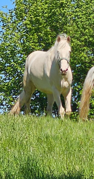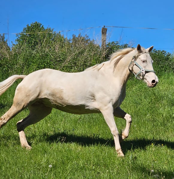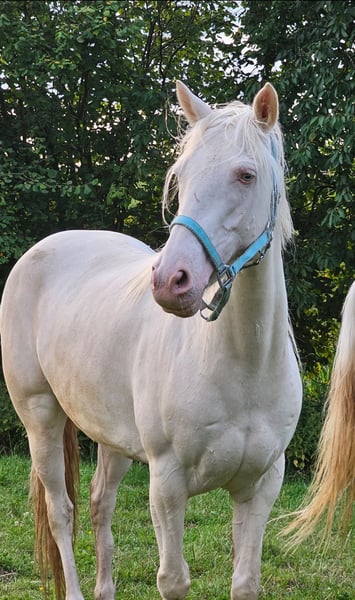 Wir verkaufen unsere bezaubernde Cremello-Champagne Stute, mit einem absolut traumhaften Wesen.