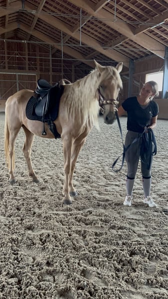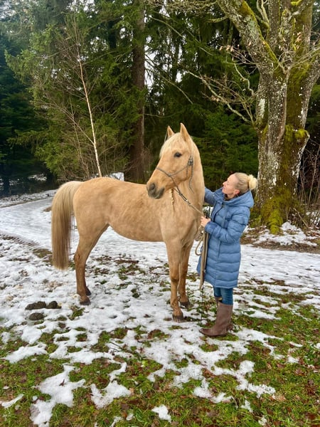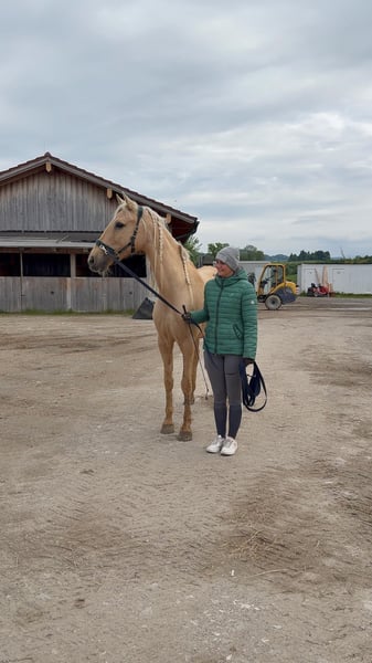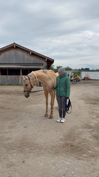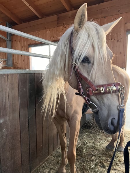 Diese wunderschöne Palomino Andalusier-Stute sucht ihr Fürimmer Zuhause 2017 geboren hat sie das perfekte Alter. Sie ist zuckersüß mit Kindern. Sie präsentiert sich in einem strahlenden Palomino-Fell und hat ein Stockmaß von 158 cm. Diese charmante Stute eignet sich hervorragend für den Freizeitbereich und begeistert durch ihr sanftes Wesen und ihre hohe Lernbereitschaft. Sie ist gut erzogen, brav im Umgang und super motiviert. Nicht schreckhaft. Wir bauen sie muskulär und futtertechnisch gerade auf. Sie kann definitiv noch mehr Muskeln im Rückenbereich brauchen, daher habe ich den Preis runtergesetzt und hoffe, dass jemand mit Geduld ihr noch etwas Zeit gibt um sie aufzubauen. Aktuell wird sie aus diesem Grund nicht geritten. Bei Interesse oder weiteren Fragen freue ich mich über deine Anfrage.