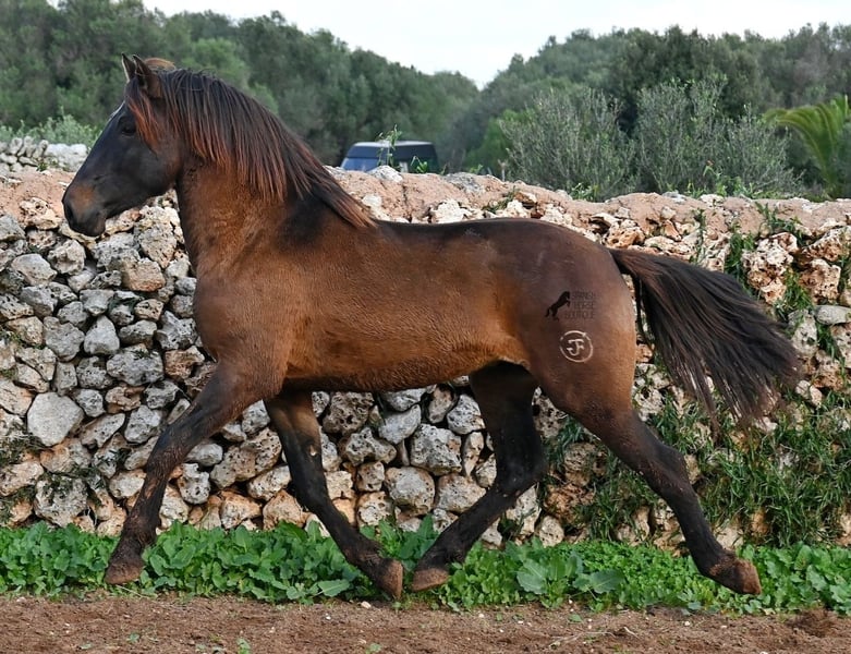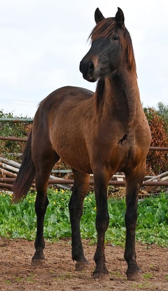 Dieser 2023 geborene PRE Hengst (Andalusier mit Rassenachweis der ANCCE), ist ein wahrer Hingucker. Er hat Charme, Esprit, Ausdruck, ist sehr barock für sein Alter, schwebt aber dabei mit einer Leichtigkeit über den Platz, da braucht man nicht viel Fantasie, wie er sich später im Viereck tun wird. Er ist fast schwarz unter seinem plüschigen Winterfell, mit einem ganz kleinen Stern auf der Stirn, den er meist unterm Schopf versteckt und ein ganz dezentes weißes Abzeichen hat er auf einem Hinterfuß. Sein barockes Exterieur ist jetzt schon beeindruckend und der Junge weiß, dass er gut aussieht, denn er präsentiert sich ganz stolz und zeigt seine beste Bewegung, trotz rutschigem Untergrund. In seiner Abstammung, finden wir viel Escalera Blut und sogar den Mejorante Hengst Dominante XVI. Das typische Feuer, gepaart mit Menschenfreundlichkeit und sanfter Stärke der Escalera, sieht man auch deutlich an ihm. Der Züchter legt großen Wert darauf, dass die Hengste bis mindestens 3 Jahre in der Hengstherde aufwachsen. So kommt es, dass er bei der Regensaison auf Menorca plüschiges Fell und etwas Panier im Fell hat, aber nur ein Indiz auf das natürliche Aufwachsen ;) Mit aktuell 159cm, wird er noch an die 165cm heranwachsen und dabei für viele Sparten interessant werden, da er zwar barock, aber keinerlei schwerfällig ist. Es besteht die Möglichkeit, dass er vor Ort noch antrainiert wird und aufs Reitpferdeleben vorbereitet wird. Für all jene die keinen Hengst halten können, besteht natürlich auch die Option der Kastration vor Ort. Sein Standort ist Menorca. Videos und Abstammung gerne auf Anfrage. Gerne organisiere ich vor Ort eine AKU, Beritt, Kastration, Transport oder auch ihre Reise, sollten Sie persönlich zum Anschauen kommen. Details dazu gerne auf meiner Seite oder im Gespräch. Saludos aus Spanien
