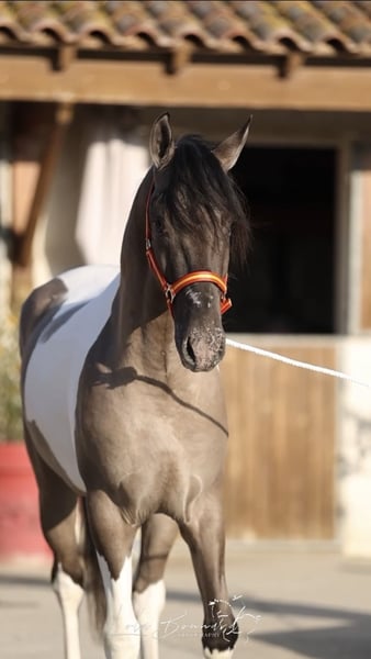 Copito – a Rare Soul in Brown & White Tobiano Andalusian Stallion 3 years old – a true raw diamond Approximately 15.7 hh Clinically healthy For those seeking character and uniqueness. Why “Copito”? The name means “little snowflake.” It suits him perfectly: gentle in expression, calm in nature, with a soft yet strong presence. For those who choose with heart and eye. If you're looking for a horse that stands out without being loud, Copito might be just the one for you. Further information and an introduction are available at any time.