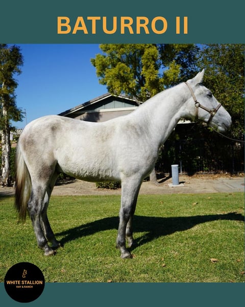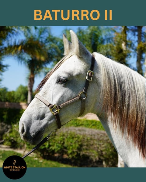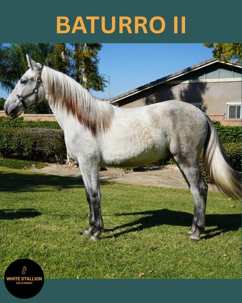 Baturro II's Background Breed - Andalusian Gender - Colt DOB - 02/05/25 HH - 14.1 Price - $10,999 Bred and raised at White Stallion Hay & Ranch Soon to be registered with the Spanish Horse Association (ANCCE) Great colt to soon begin under saddle for the discipline of your choice Family Background - Sire (Baturro de Duran) Son of Vagabundo XX who was a SICAB champion is 2016 which is the biggest and most important morphology competition in Spain. Baturro de Duran also comes from the Romero Benitez bloodline which is one of the most ancient and rarest bloodlines in current times. - Dam (Vanidosa CXXIX) Vanidosa CXXIX is a descendant of Generoso XXXII, a stallion who left a big legacy in the dressage arenas and Piaffe competitions. Generoso was a very functional stallion, set apart by his extended and suspended movements. Contact Bryan at (951) 454-5441 to view Baturro II in person.