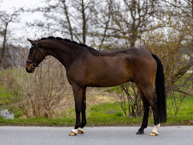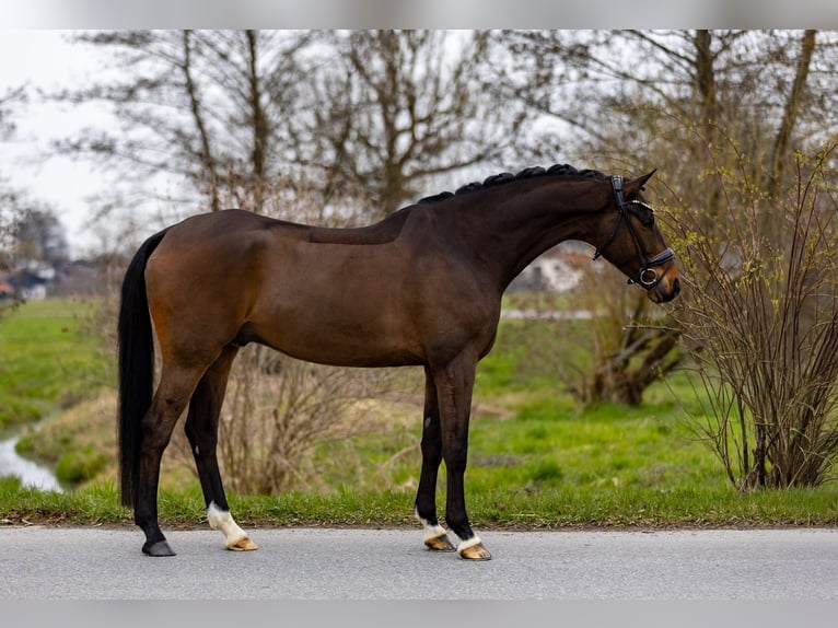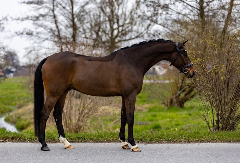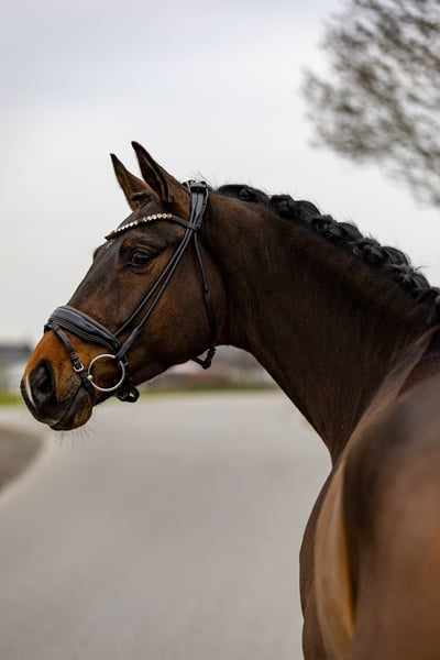 This tall, very elegant, and already successful dressage prospect impresses with its rideability, presence, and an absolutely pleasant temperament. It is easy to ride, extremely seat-friendly, and consistently maintains a pleasant and steady contact. Even now, it demonstrates a high level of concentration and willingness to perform in daily work. Collection comes effortlessly to it, and it also impresses in extensions in trot and canter with expression and clarity. The flying changes have already been cautiously introduced — the horse shows a willingness to learn and is uncomplicated, making further development in this area easily achievable. Thanks to its size, stability in the back, and a comfortable riding feel, it is also well-suited for male riders or somewhat heavier riders. In handling, this horse leaves nothing to be desired: very friendly, human-oriented, affectionate, and completely uncomplicated in daily handling. This horse offers versatile prospects: - For ambitious competitive riders, a highly interesting young dressage horse with the goal of competing in M-level dressage this season and, in the future, S-level - Equally suitable for a solid L-level tour due to its rideability and clarity - Also very suitable for amateurs, less experienced riders, teenagers, or children seeking a high-quality and reliable horse A horse that impresses equally through its quality, attitude, and character. Location: Rosenheim