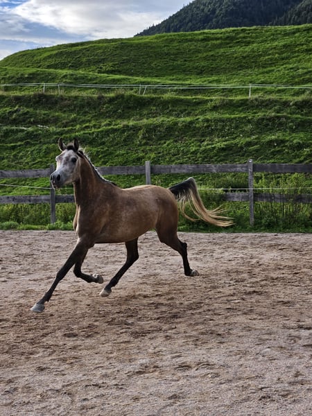 **Sales Advertisement: Dreamy Anglo-Arabian Gelding for Sale** We offer an exceptional Anglo-Arabian gelding for sale. **Features:** - **Breed:** Arabian - **Gender:** Gelding - **Year of Birth:** 2022 - **Color:** Gray - **Height:** 155 cm - **Discipline:** Endurance, Leisure This young gelding impresses not only with his appealing color and harmonious conformation but also with his friendly and open character. He is well-suited for endurance sports/trail riding and already shows a lot of potential in this area. He is well-mannered, easy to handle, and has already gained initial experience under saddle. With his high willingness to perform and balanced temperament, he is the ideal partner for ambitious riders who enjoy endurance riding. If you are interested or have further questions, we look forward to your message. Viewings are possible by appointment. For more information, please WhatsApp or call 0043 664 1898875