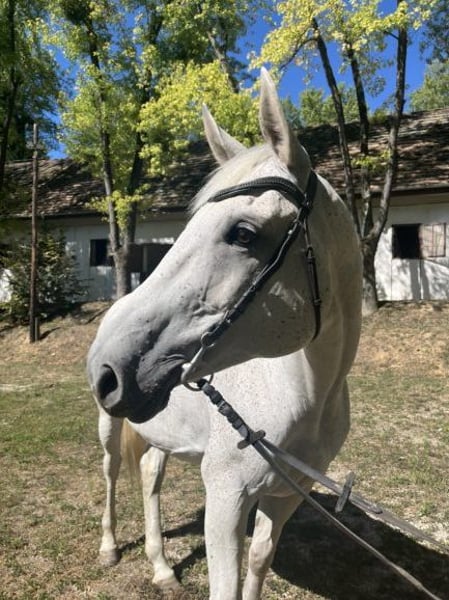 Messina is a 10-year-old, completely healthy, grey Anglo-Arabian mare, sired by 5181 Gazal XIX-1. Primarily for hobby, cross-country riding, but due to her temperament and stamina, she may even be suitable for long-distance riding. She has also started jumping work. She requires an experienced rider, not suitable for beginners. I also recommend her breeding due to her excellent pedigree. She is easy to handle, she gets along well with other horses. Her vaccinations and blood tests are up to date. Location: Kaposvar, Pannon Lovasakademia