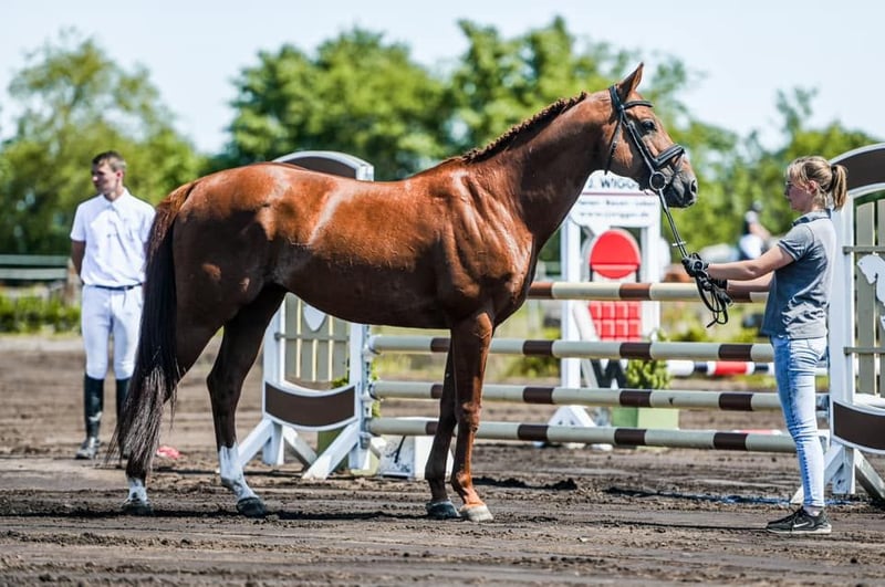 Der auffällige Fuchs stammt aus der Zucht von Kurt-Jürgen Carl vom Gut Ludwigsburg in Waabs. Spät in den Sport gestartet entwickelt sich der bewegungsstarke Hengst immer besser. 2021 konnte er auf der HLP in Mertingen vor allem mit seiner Leistung im Gelände (9,0) überzeugen und steht den Züchtern im Natursprung zur Verfügung. „Diether“ konnte sich in Springprüfungen bis zur Klasse M platzieren und konnte zusätzlich in der Dressur und im Gelände Erfolge mit nach Hause bringen. Parallel konnte er auch immer wieder für den reiterlichen Nachwuchs eingesetzt werden und wurde erfolgreich in WBO Prüfungen eingesetzt. Ein leistungsbereiter Hengst mit bestem Charakter.