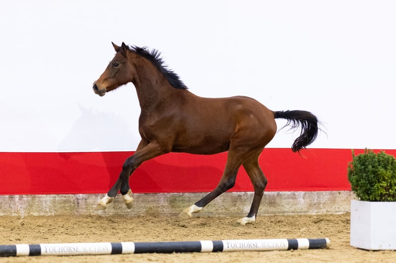 Light-footed young horse with engine and power Hazelberg’s UFO will only turn two and is making his first jumps here. His attitude is clearly present. He is light off the ground, shows good push off the fence and a strong natural engine. In movement, his very good hind-end stands out: the hind leg is well placed underneath the body and he canters clearly uphill, which translates directly into power over the jump. A well-balanced, strong and attractive model with strength and future potential. Sire Jaymerald du Trèfle (Emerald van ’t Ruytershof x Girly du Trèfle) is KWPN licensed and competing at 1.35m level. Through Emerald van ’t Ruytershof (1.60m, BWP Ambassador) he brings reflexes, blood and scope, combined with the proven sport influence of Kannan GFE in the damline. A modern sire line focused on technique, power and attitude. Damline The dam is Hazelberg’s Kiterunner (Farthago de Trebox), descending from a proven performance family. Farthago de Trebox competed at 1.40m level and is known for passing on scope and attitude. The second dam Evercor (Verdi TN) carries top-level sport genetics. Verdi TN competed at 1.70m Grand Prix level and is one of the most influential sires of his generation. The third dam Petite Fleur (Corrado I) produced several sport horses, including: – Lennox (Lancer II), 1.30m – Campeon (Corrado I), 1.35m Further back we find Hurricane (Landgraf I) and Moncherie S (Contender), anchoring the family with generations of international sport and proven performance. A damline with depth, durability and results at 1.30m level and higher.