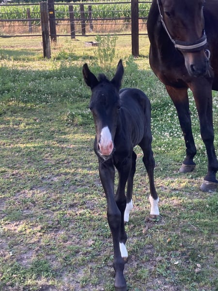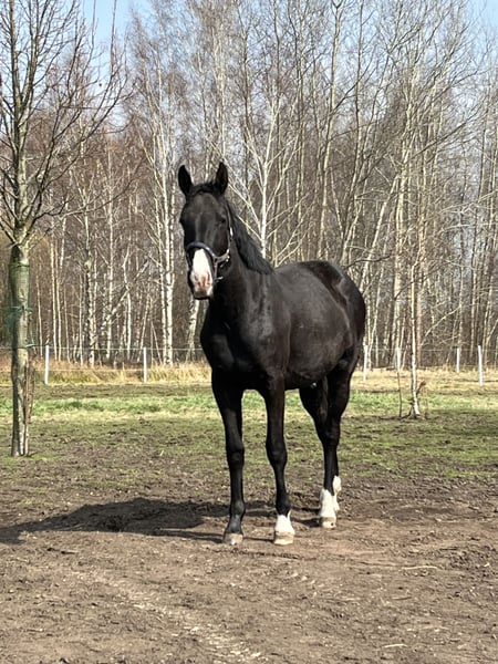 For sale: a very handsome 2-year-old gelding. Bred by me, of AES (Oldenburg) breed. His mother competed successfully at international level in 135 cm show jumping, with numerous successes. His father currently competes at 150 cm level in international competitions. The gelding is very brave, able to walk on a lungeline with a bridle, and has jumped in the corridor several times, demonstrating excellent jumping technique. He is herd-minded, very easy to handle, and accustomed to dogs. Regularly dewormed, hoofed and shod by the farrier, and vaccinated. Trained to be driven in a cart. Videos from the corridor can be sent via WhatsApp. Contact only by phone: +48 501 145 369.