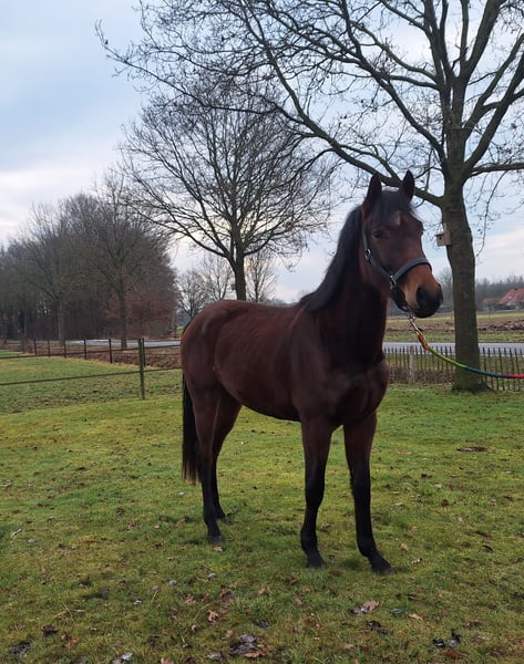 Toekomstige dressuur topper🤩 (Bijna) 3 jarige merrie van Novian x Jazz. Rond de 1,57 is nog in de groei(deze lijn geeft laat bloeiers 😊) * Kent vast staan en vind het heerlijk om gepoetst te worden. * braaf bij de hoefsmid en tandarts. * Nuchter van karakter. * Kent de beginselen van het longeerwerk en vind dit leuk om te doen. * sociaal met andere paarden. * geen stal gebreken. * keuren k.k Filmpje op aanvraag.